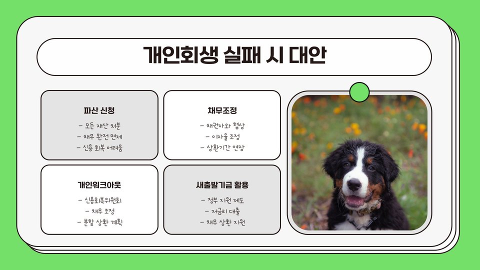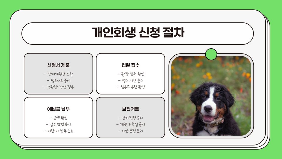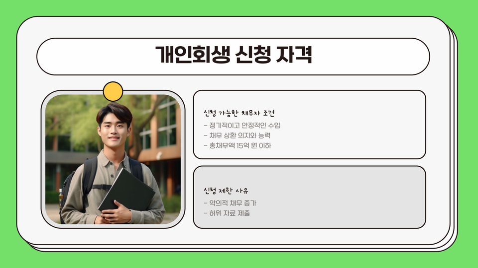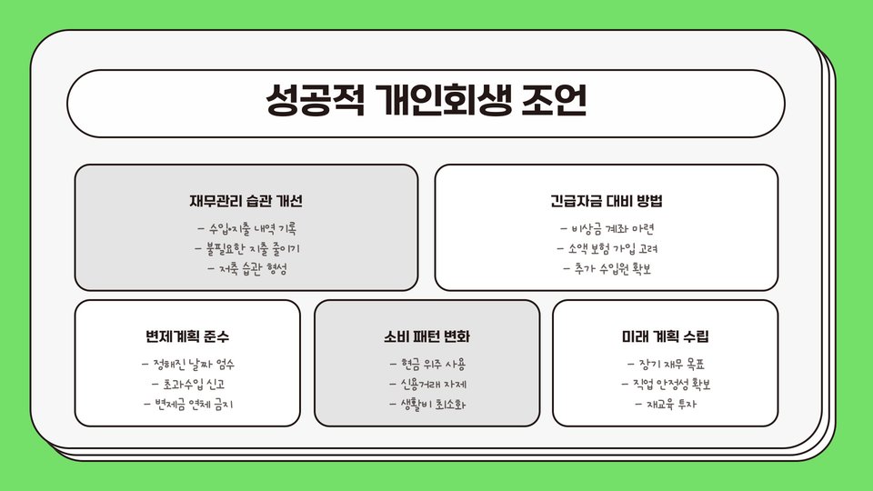 Tags: 개인회생, 재정 회복, 채무 조정, 법원 심리, 신용 회복, 전문가 도움, 신청서 제출, 회생 계획, 신용불량자, 경제적 어려움