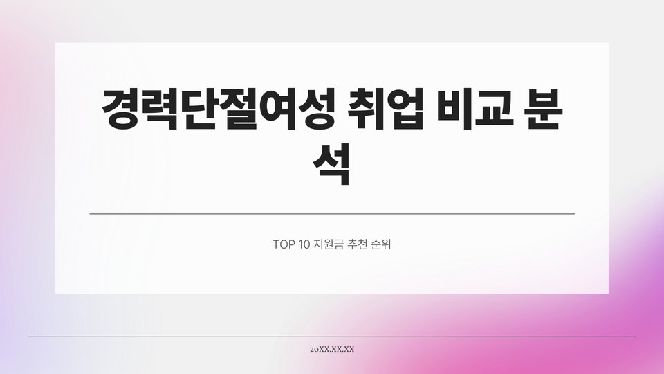 경력단절여성 취업 비교 분석 TOP 10 지원금 추천 순위