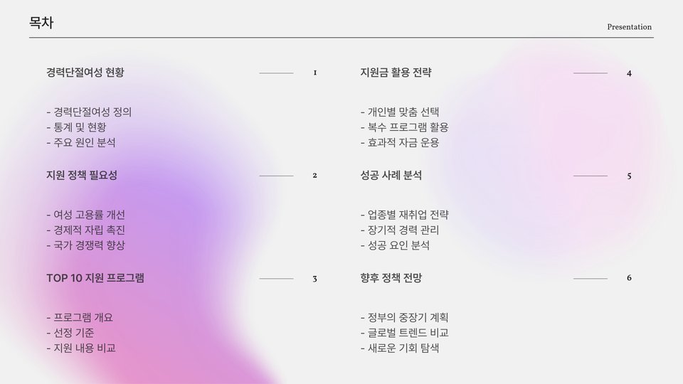 다음으로 경력단절여성을 위한 TOP 10 지원금을 소개합니다. 각 지원금의 특징과 혜택을 간단하게 정리해 보겠습니다.