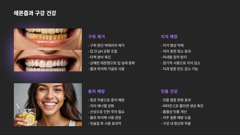 - 치아 건강에 주의: 치아 에나멜에 해를 끼칠 수 있습니다.
