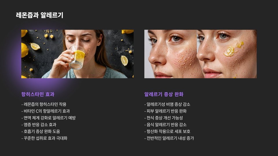 또한, 레몬즙을 사용하는 사람들은 알레르기 반응을 주의해야 합니다. 일반적으로 안전하지만 일부 사람들은 레몬 혹은 감귤류에 알레르기가 있을 수 있습니다. 따라서 처음 사용하는 경우 소량부터 시작하는 것이 좋습니다.