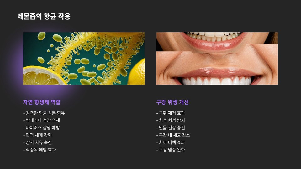 레몬즙은 여러 건강 효능을 가지고 있습니다. 특히 소화 개선에 뛰어난 효과를 보입니다. 레몬즙은 위산을 자극하여 소화를 촉진하고, 소화불량을 예방하는 데 도움을 줄 수 있습니다. 또한, 레몬즙은 면역력 강화에 기여하여 감기와 같은 질병으로부터 몸을 보호하는 데 중요한 역할을 합니다.