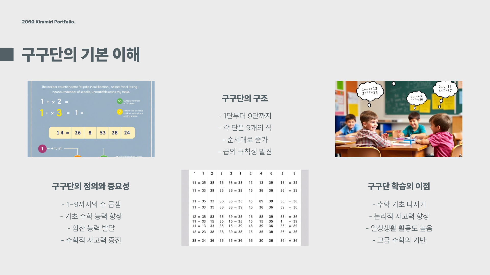셋째, 자신감이 향상됩니다. 구구단을 잘 외우면 수학 문제를 푸는 데 두려움이 줄어들고, 다른 과목에서도 긍정적인 영향을 미칩니다.