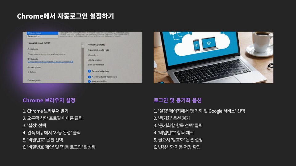 구글 자동로그인을 설정하는 과정은 상대적으로 간단합니다. 우선, 사용자는 구글 계정을 가지고 있어야 하며, 이를 통해 로그인 후 브라우저 설정에 접근해야 합니다. 구글 크롬을 예로 들면, 브라우저의 오른쪽 상단에 있는 '설정' 메뉴를 클릭한 후 '자동 로그인' 옵션을 찾아 체크해야 합니다. 이를 통해 구글은 사용자의 로그인을 기억하게 됩니다.