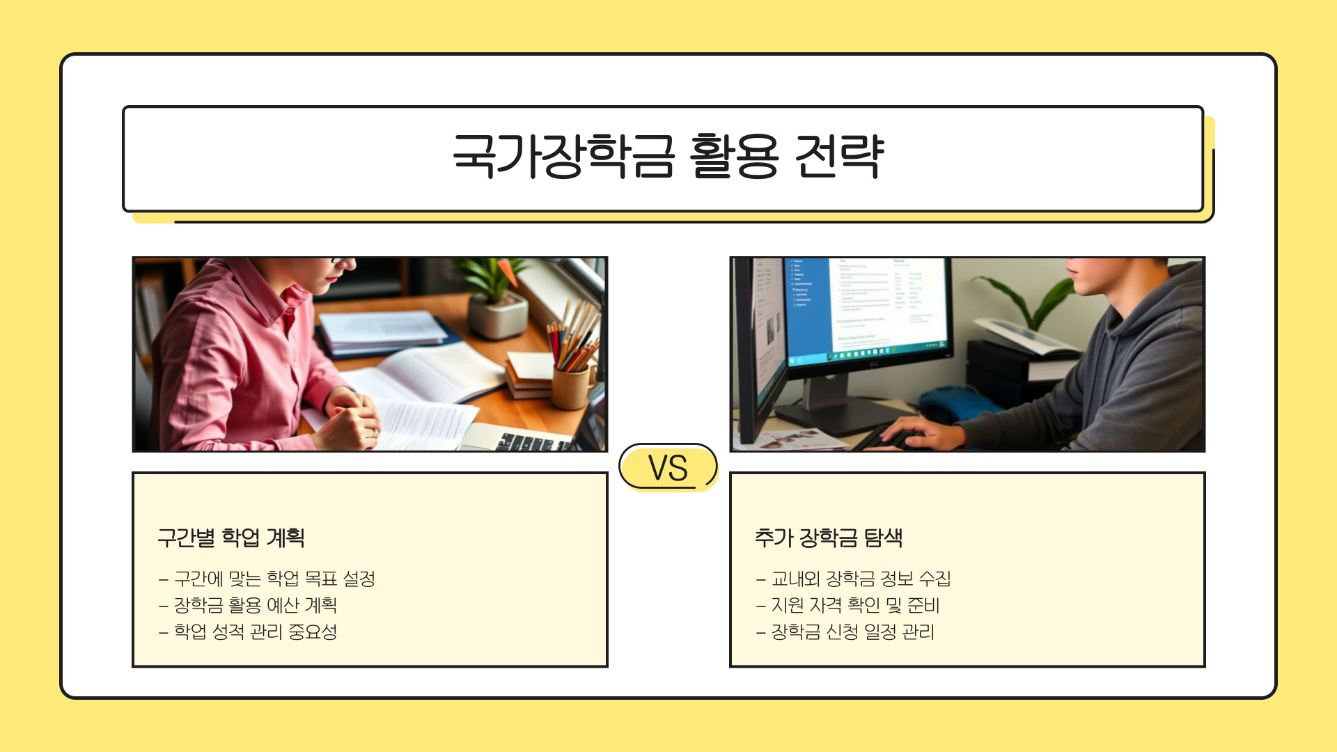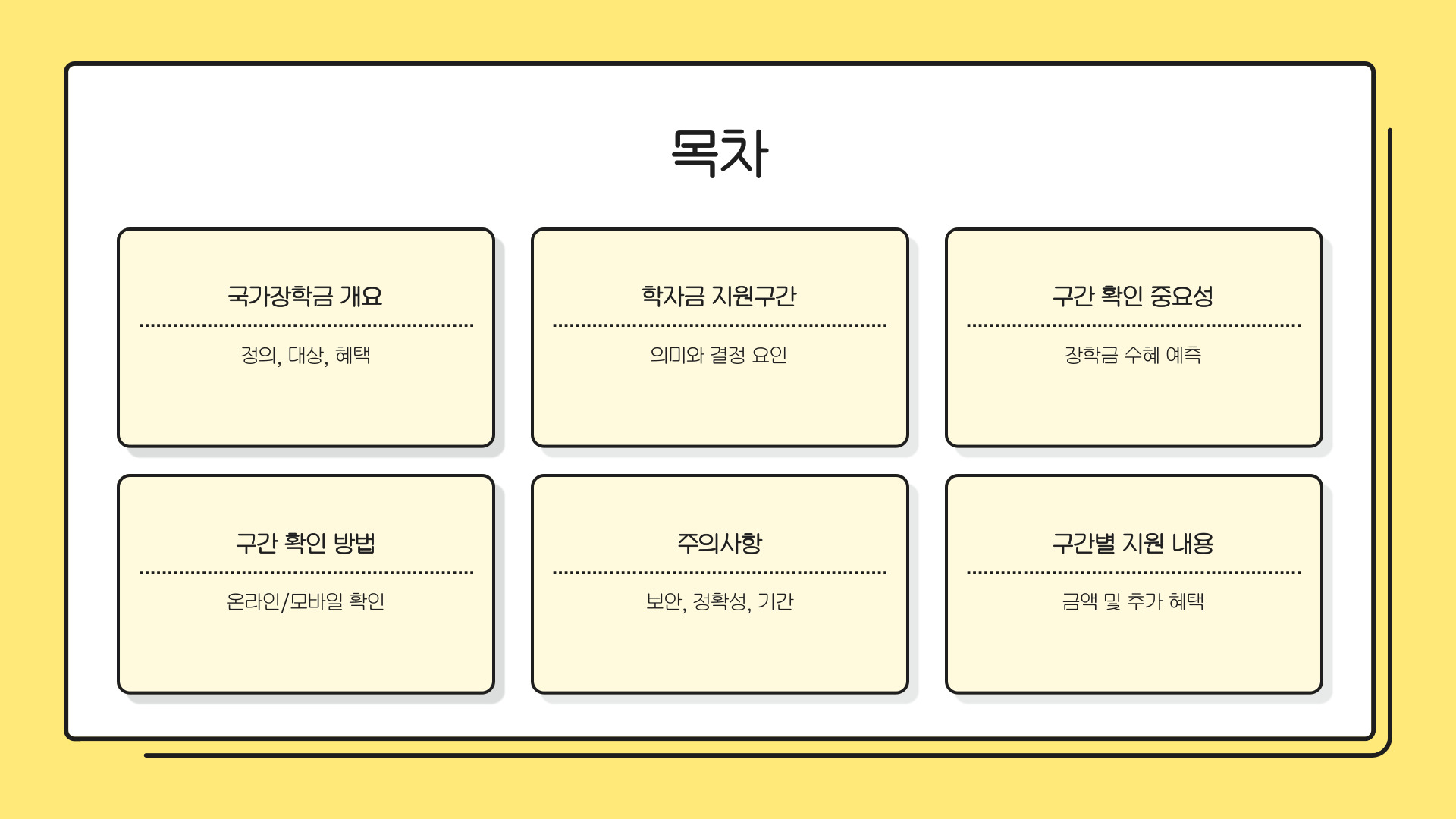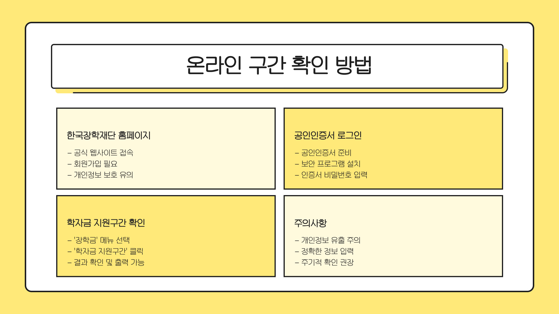 - 국가장학금은 경제적 지원 프로그램이며, 구간 확인이 중요하다.