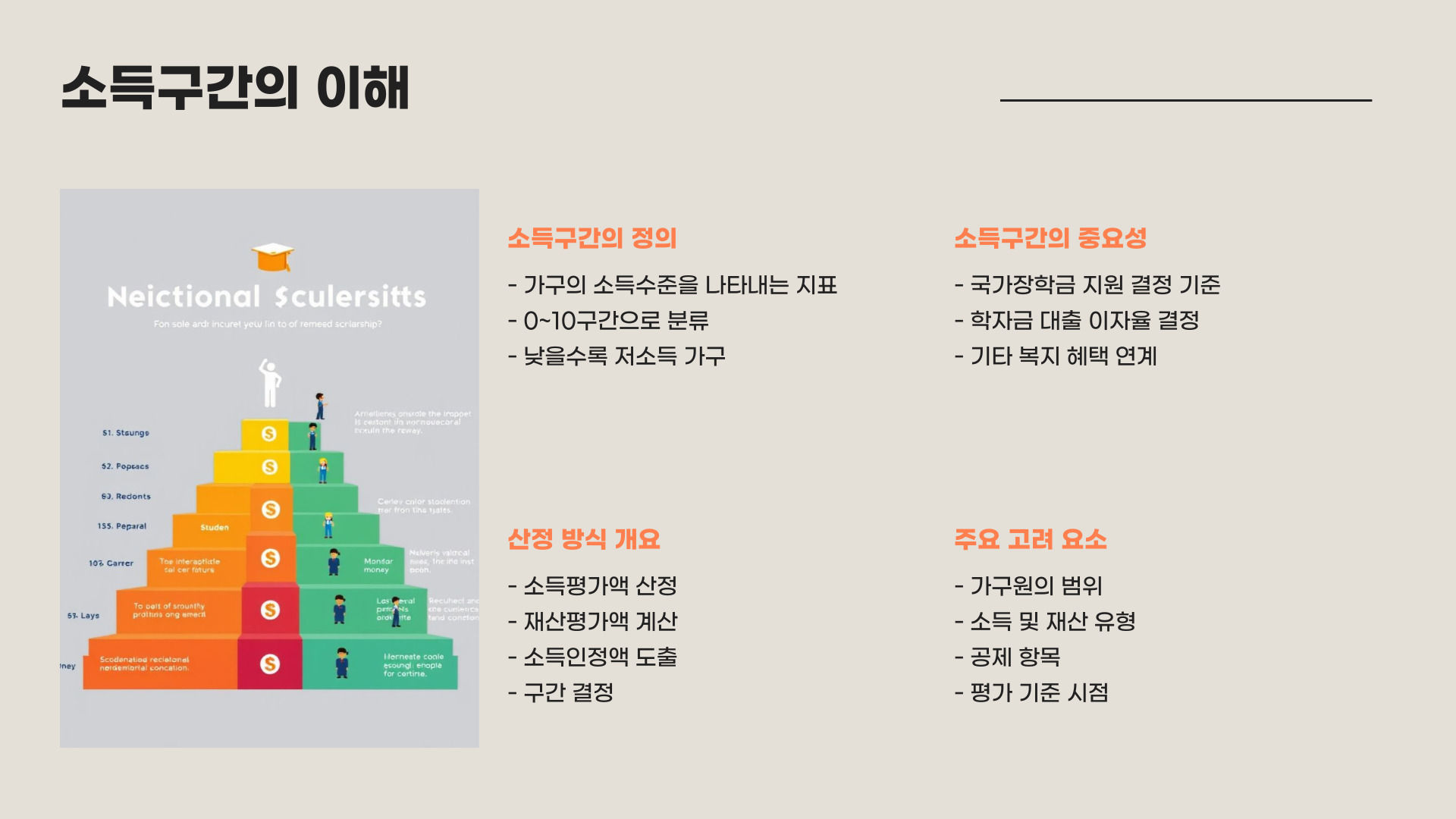 Tags: 국가장학금, 소득구간, 장학금 신청, 소득인정액, 지원금, 고등교육, 한국장학재단, 학생 지원, 경제적 지원, 교육비 절감