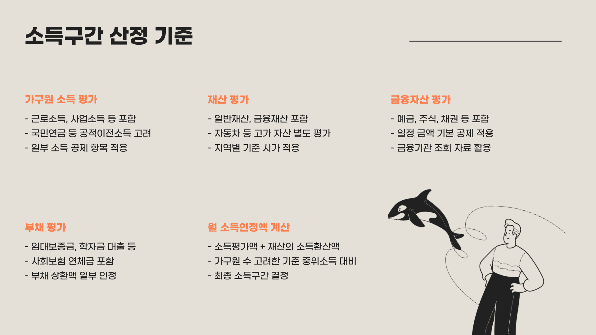 소득구간은 소득인정액을 기준으로 산정됩니다. 소득인정액은 가구의 소득에서 일정한 공제액을 뺀 금액으로, 가구원 수에 따라 차이가 있습니다. 이 계산식은 매년 변동이 있을 수 있으니, 최신 정보를 확인하는 것이 중요합니다.