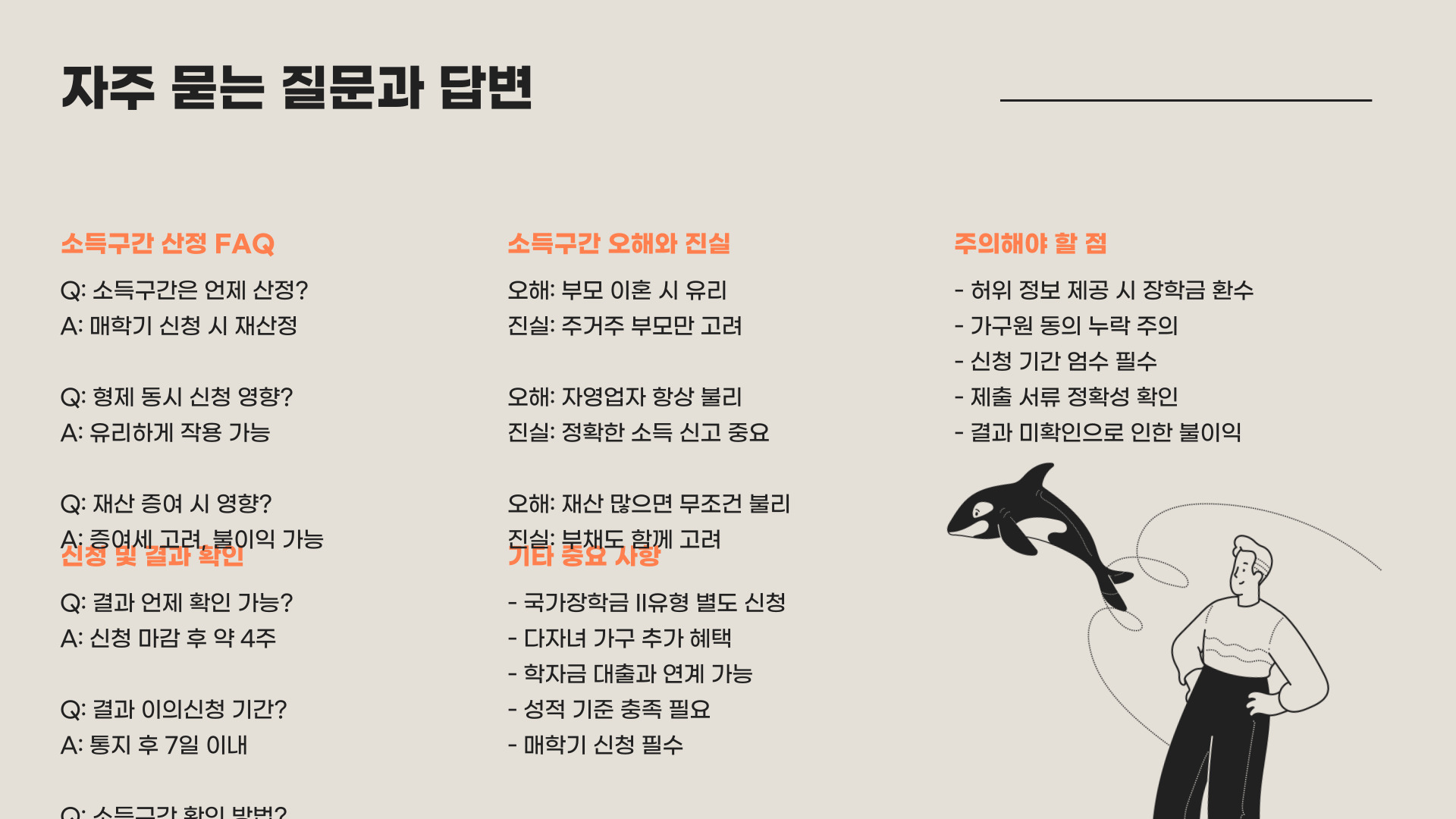 - 소득 신고의 중요성: 정확한 소득 신고가 장학금 지원 여부에 영향