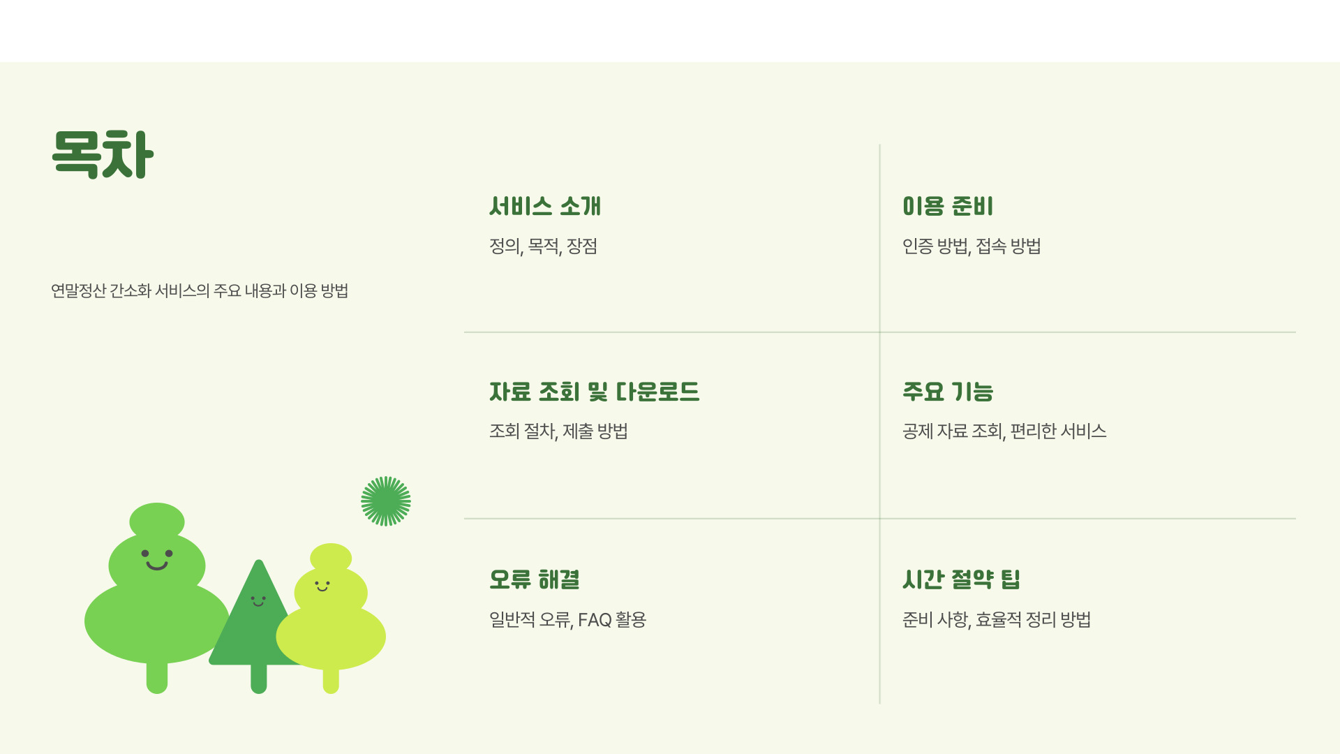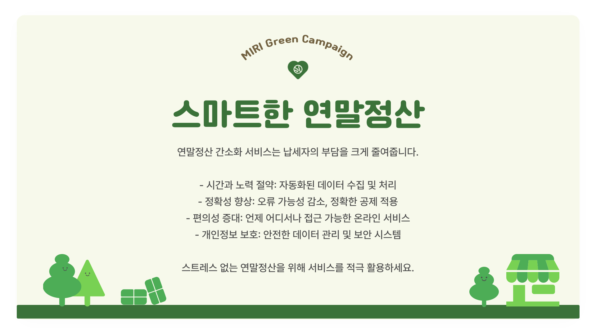 - 연말정산 간소화 서비스는 세금 정산을 간편하게 도와줍니다.