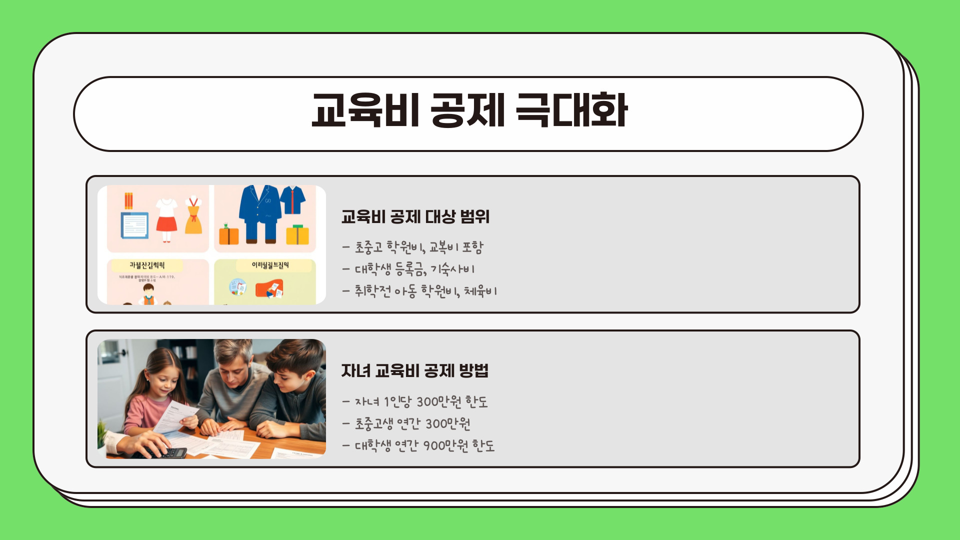 - 세액 공제를 최대한 활용하라.