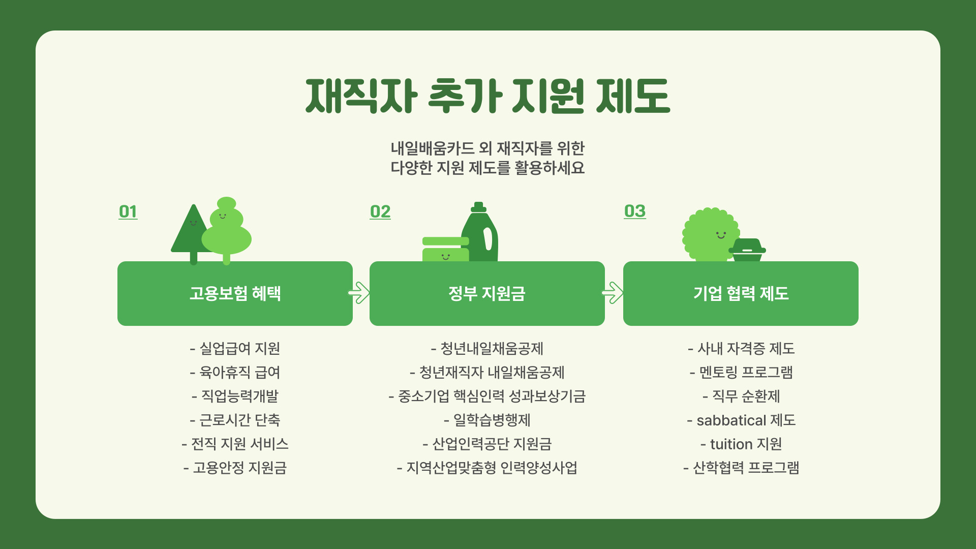 Tags: 내일배움카드, 재직자, 교육비 지원, 경력 개발, 직무 능력 향상, 교육 과정, 고용노동부, 직업 훈련, 기업 인센티브, 교육 기회