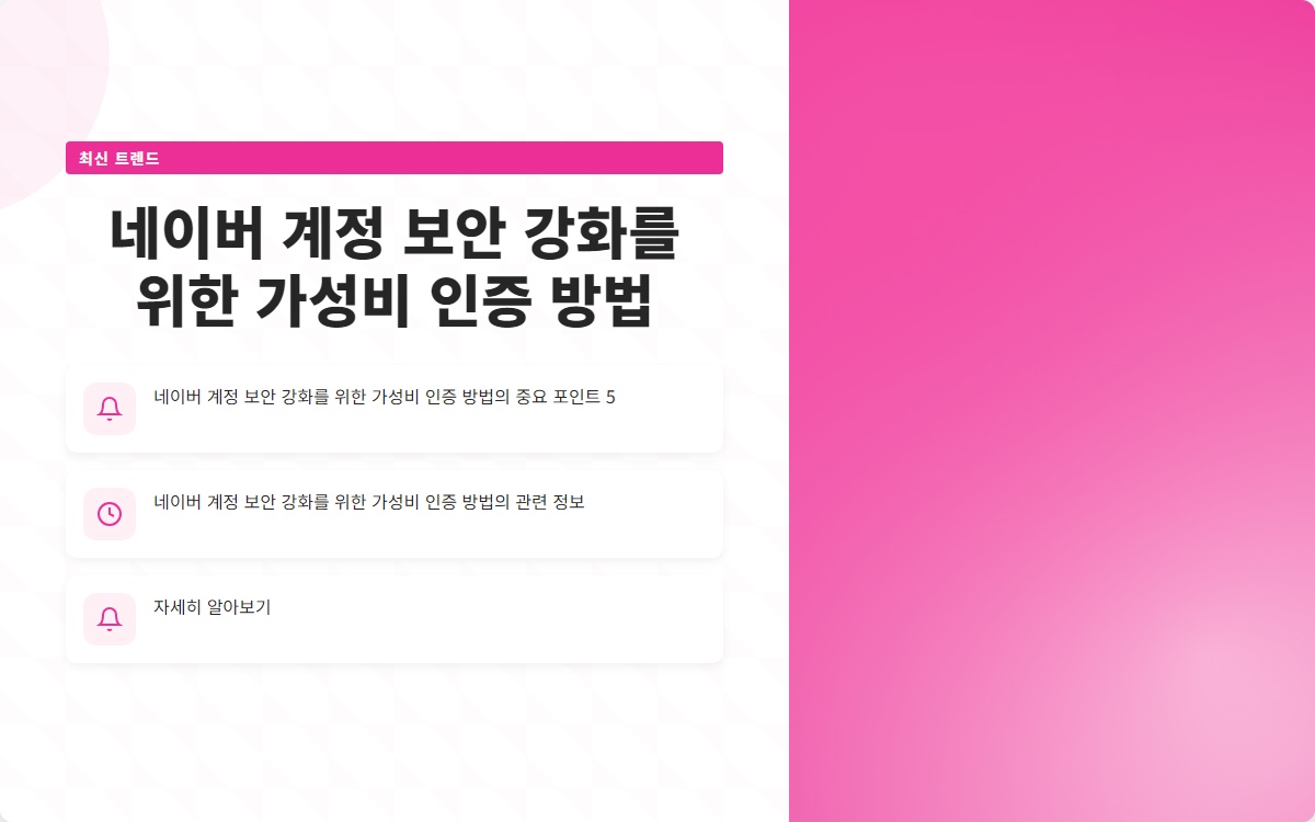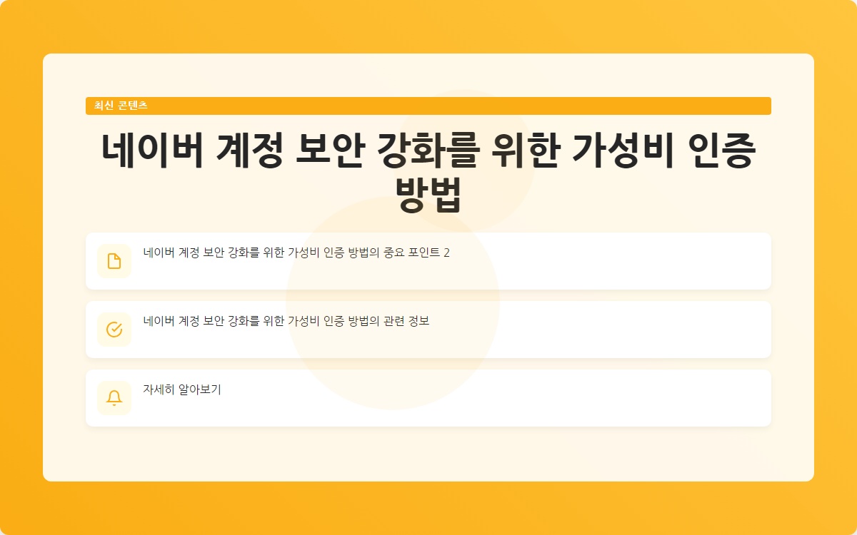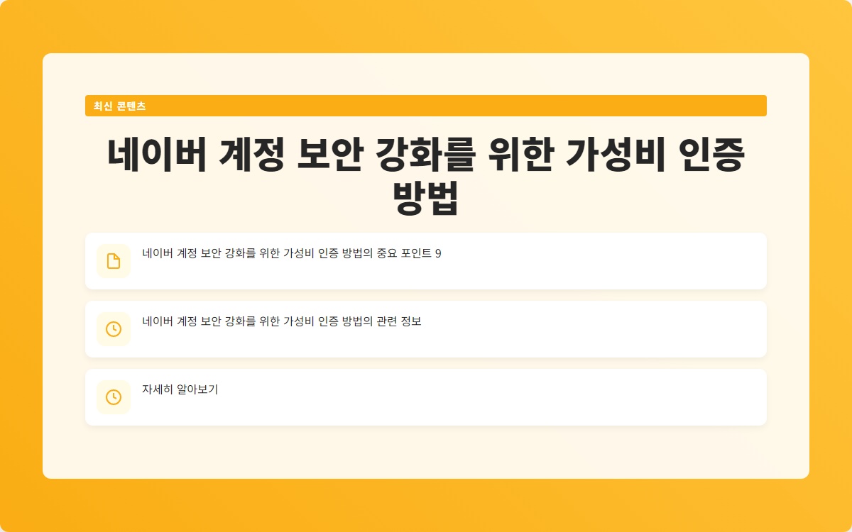 네이버 계정 보안을 강화하기 위한 몇 가지 가성비 좋은 방법을 소개합니다: