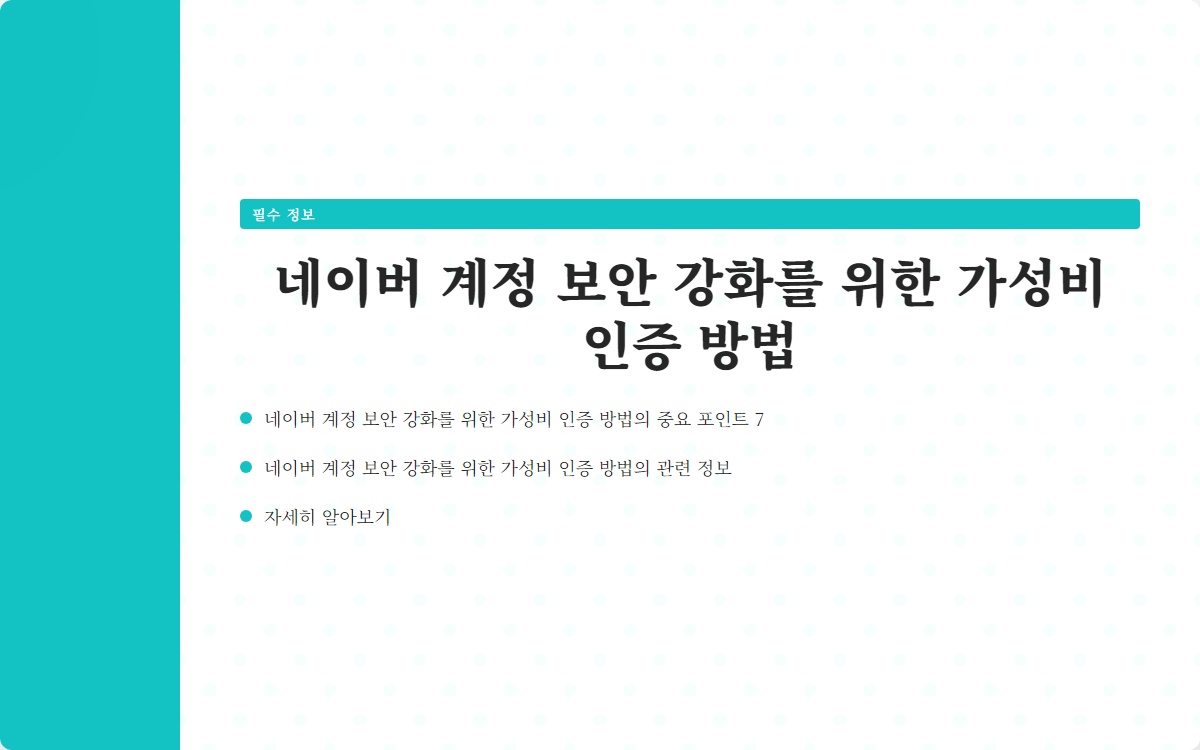 이 글을 읽고 나면, 네이버 계정 보안의 중요성을 이해하고, 경제적 부담 없이도 효과적인 보안 조치를 취할 수 있는 방법을 알게 될 것입니다.