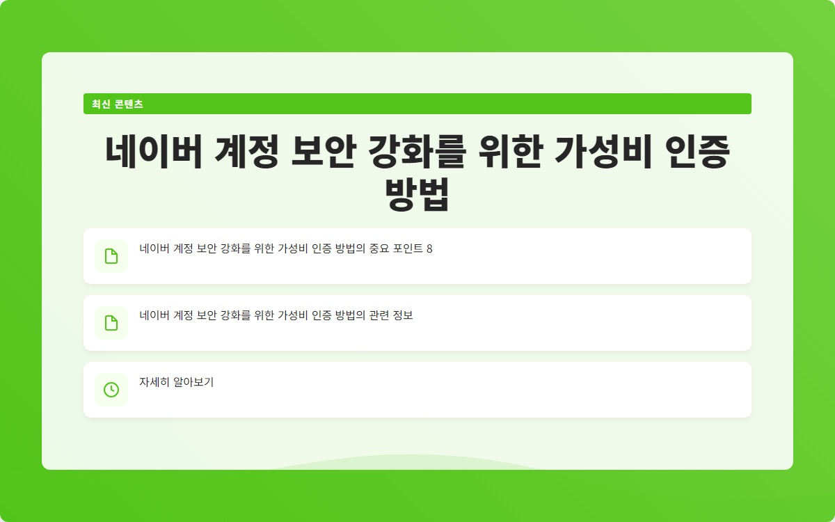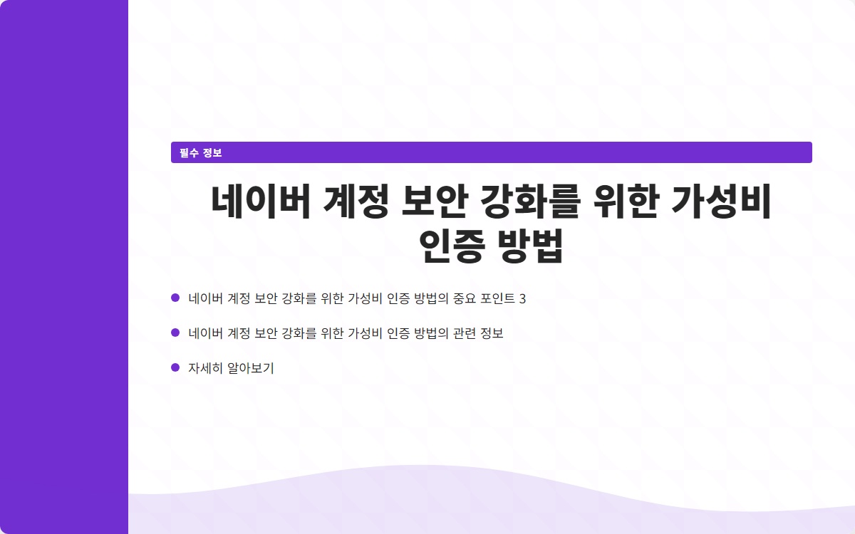 Q. 네이버 계정 보안 강화를 위한 가성비 인증 방법은 무엇인가요?