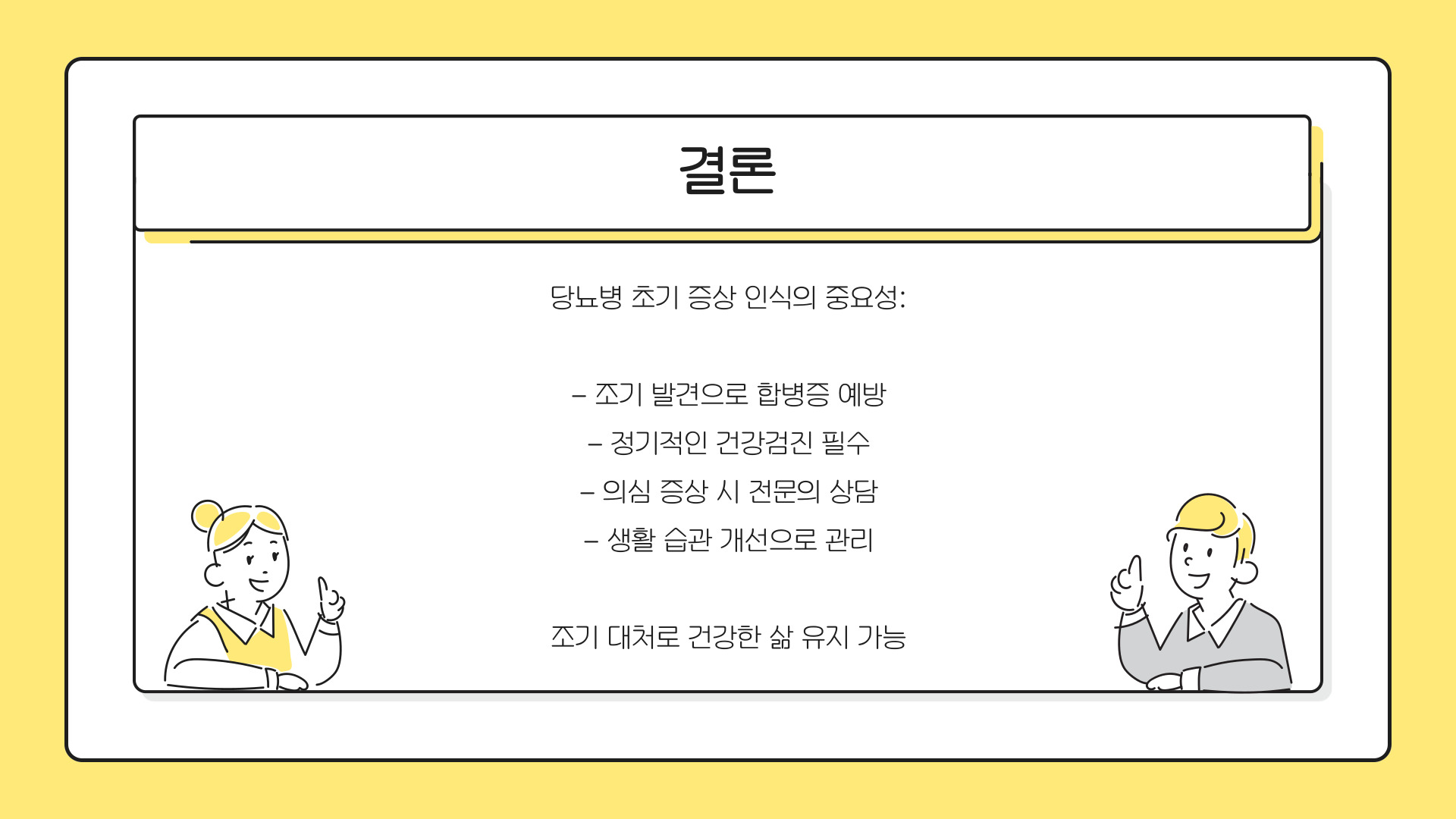 당뇨 초기증상에 대한 인식을 높이고, 필요할 경우 즉시 건강 전문가와 상담하세요!