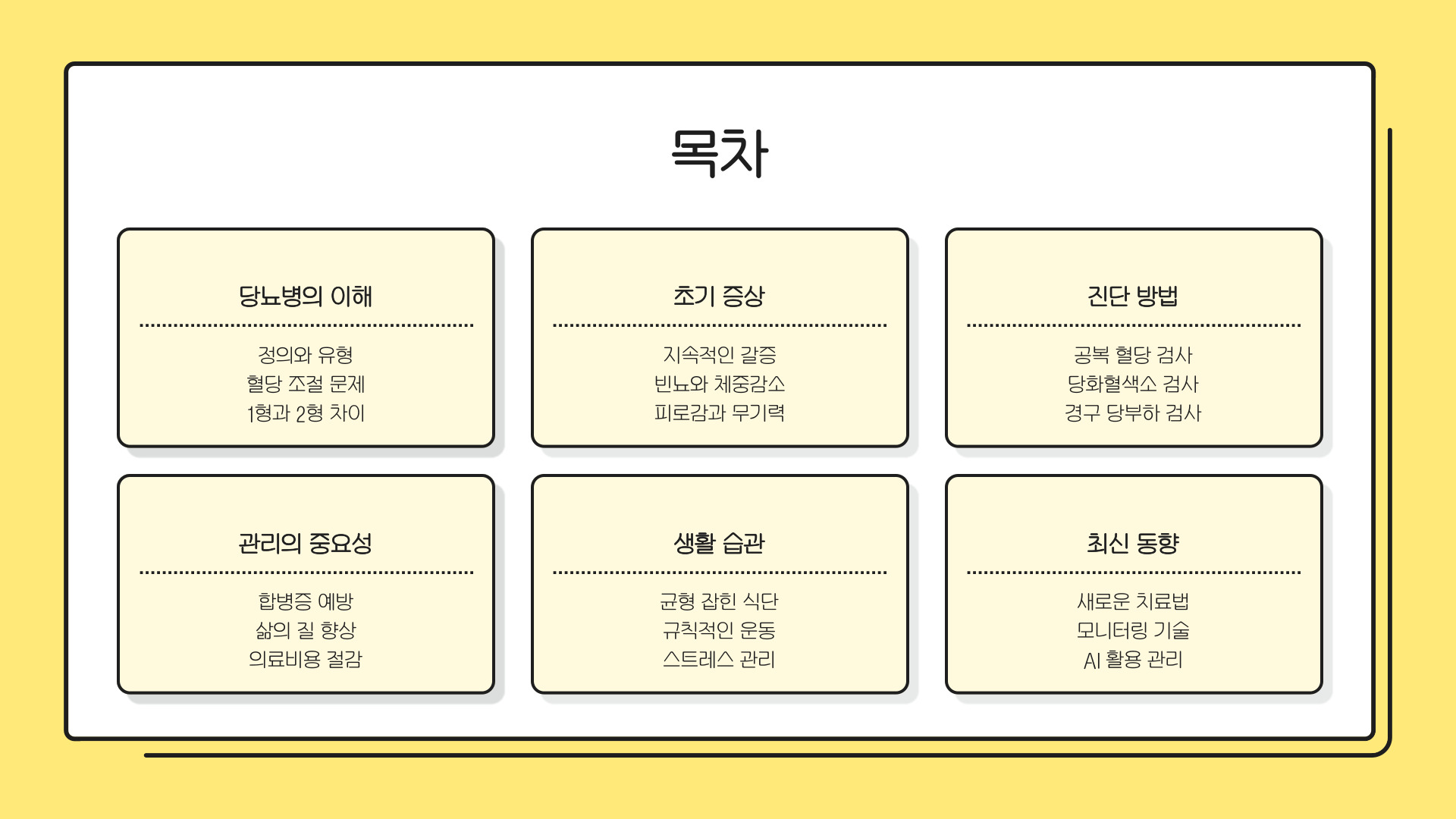 당뇨병은 점차적으로 우리 일상생활을 위협하는 질병 중 하나입니다. 초기 증상을 간과하면 중증으로 발전할 수 있어 예방이 중요한데요, 지금부터 당뇨 초기증상을 알아보고, 이를 조기에 인지하여 건강한 삶을 유지하는 방법을 소개하겠습니다.