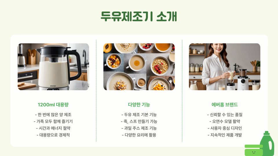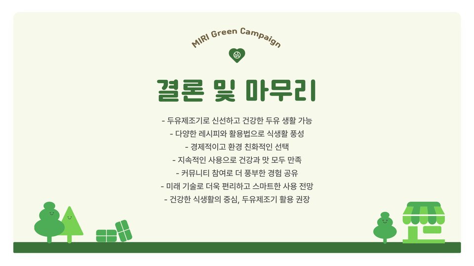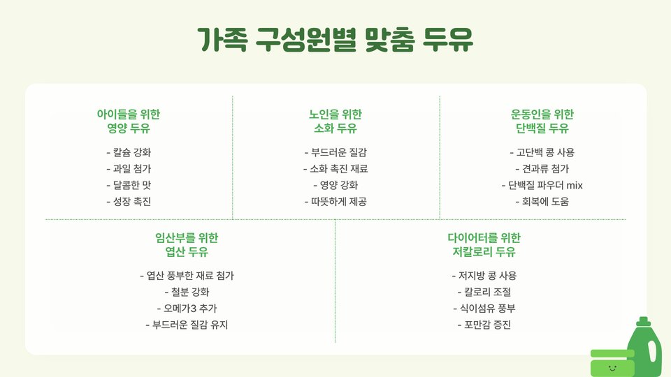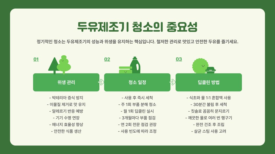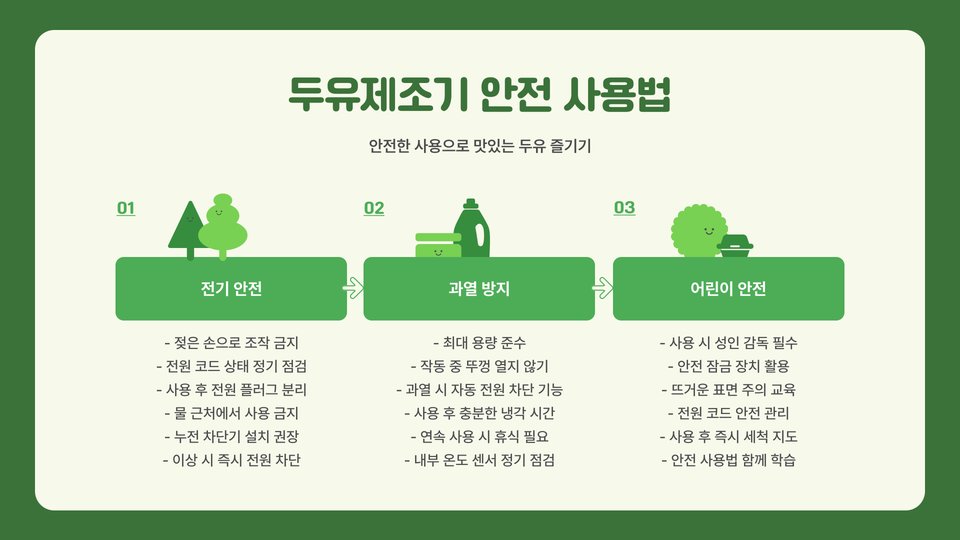 결론적으로, 두유만드는기계는 건강에 관심이 많은 현대인들에게 매우 유용한 도구입니다. 기계를 통해 집에서도 손쉽게 신선한 두유를 만들고, 다양한 레시피에 활용하여 건강한 식습관을 유지할 수 있습니다. 또한, 이 기계를 통해 가족과 함께 건강한 간식을 만들어보는 경험은 더욱 풍성하고 기분 좋은 시간을 선사할 것입니다. 건강한 두유를 직접 만들며 더 나은 삶을 지향해보세요!