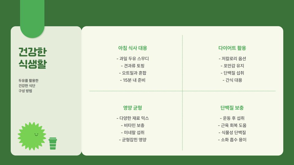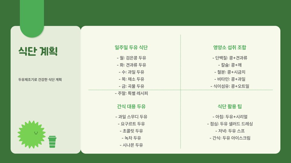 - 두유는 다이어트와 건강에 많은 도움을 줍니다.