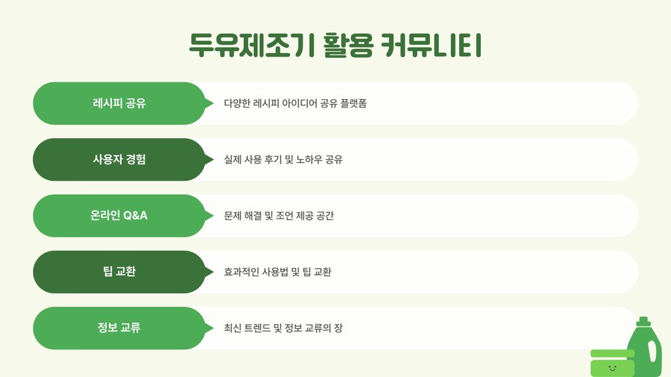 두유 만드는 기계는 기본적으로 단순하지만, 활용법에 따라 다양한 변화를 줄 수 있습니다. 예를 들어, 기본적인 두유 외에도 연유를 추가하거나 다른 식물성 재료를 믹스하면 다양한 맛을 즐길 수 있습니다. 이러한 변형을 통해 더욱 다채로운 식사를 즐길 수 있습니다.