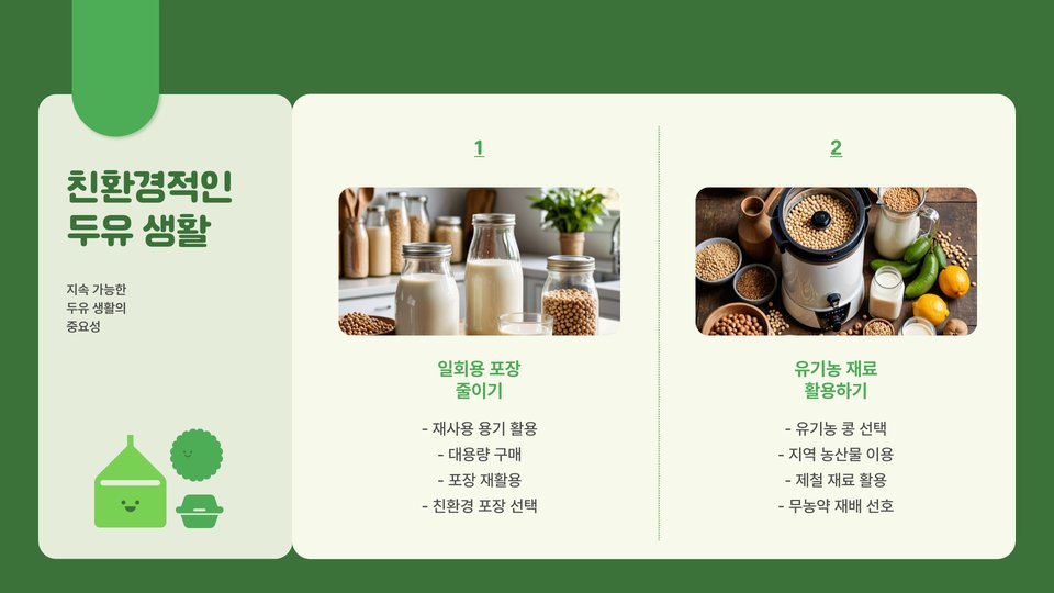 완성된 두유는 여러 방법으로 즐길 수 있습니다. 아침 식사로 시리얼과 함께 먹거나, 스무디에 추가하여 영양을 보충하는 방법도 좋습니다. 또한, 두유는 단백질과 식이섬유가 풍부하여 다이어트에도 효과적입니다. 게다가, 두유는 유당이 없기 때문에 유당 불내증이 있는 분들도 안심하고 섭취할 수 있습니다. 다양한 요리에 활용 가능한 두유는 건강한 라이프스타일을 위한 훌륭한 선택입니다.