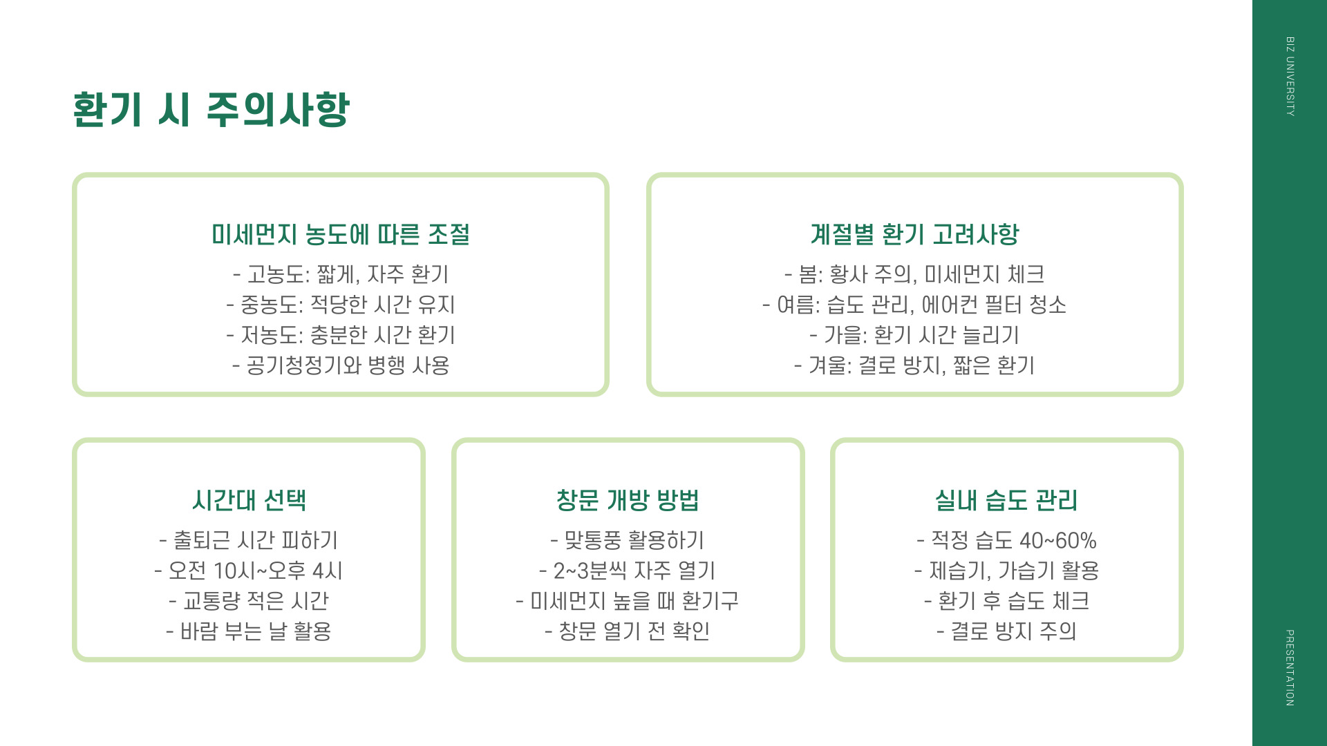 • 정기적인 환기를 통해 실내 공기를 개선하고, 건강을 지키는 것이 중요합니다.