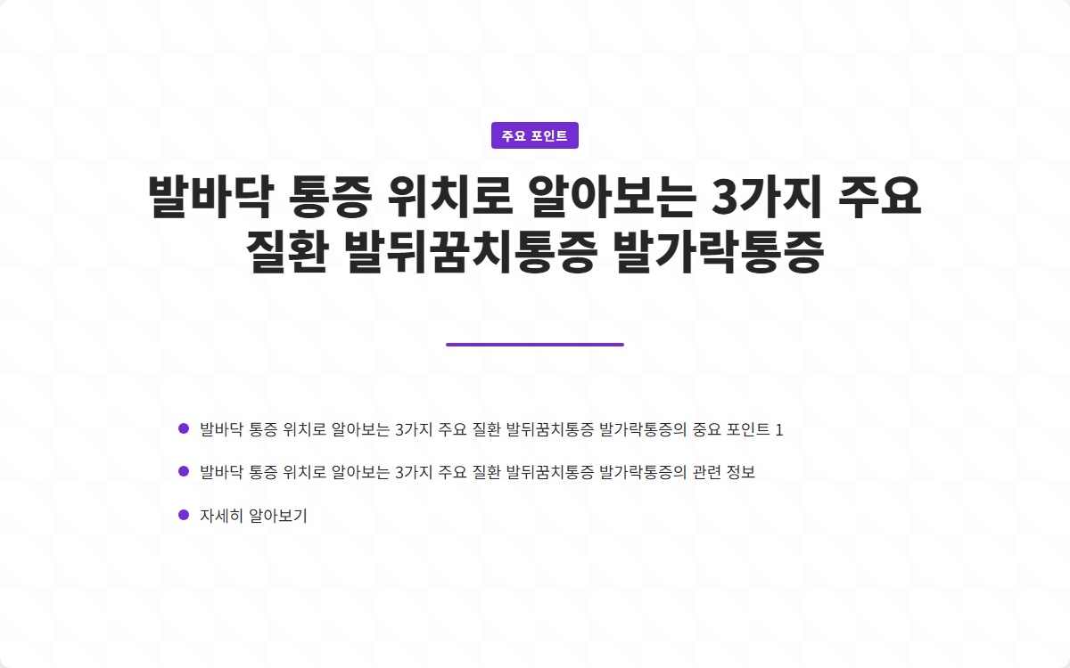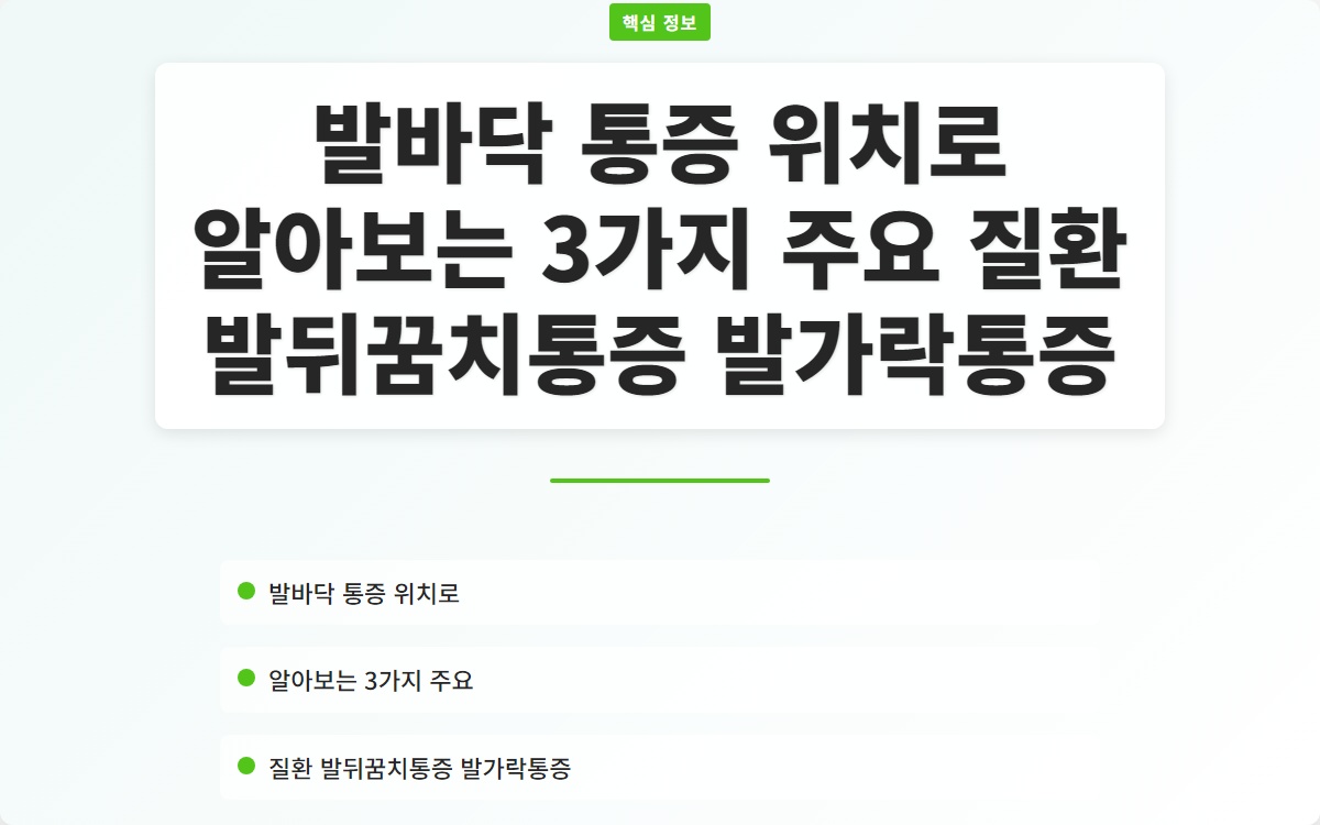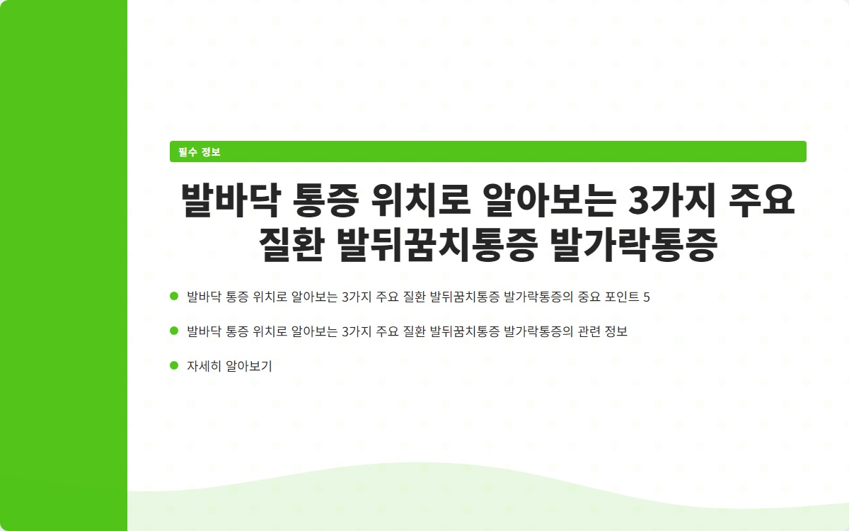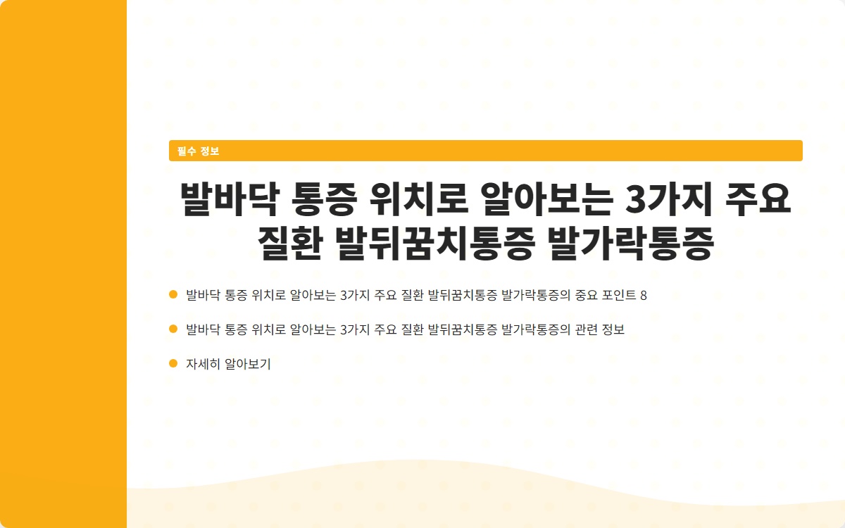 발바닥 통증, 경험해보셨나요? 우리가 일상에서 느끼는 작은 불편함이 큰 질환으로 이어질 수 있다는 사실, 알고 계셨나요? 지금 바로 발바닥 통증의 원인을 알아보고, 해결책을 찾아보세요!