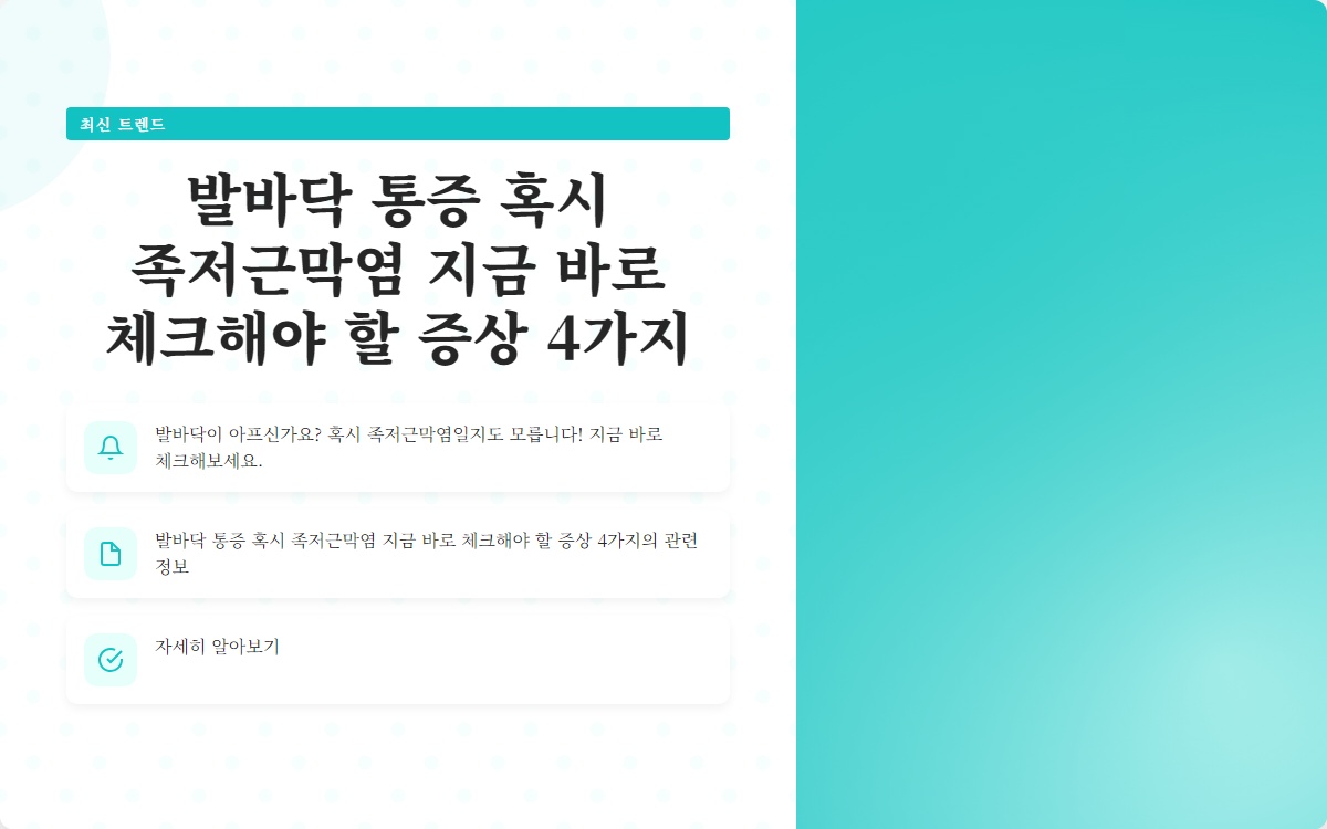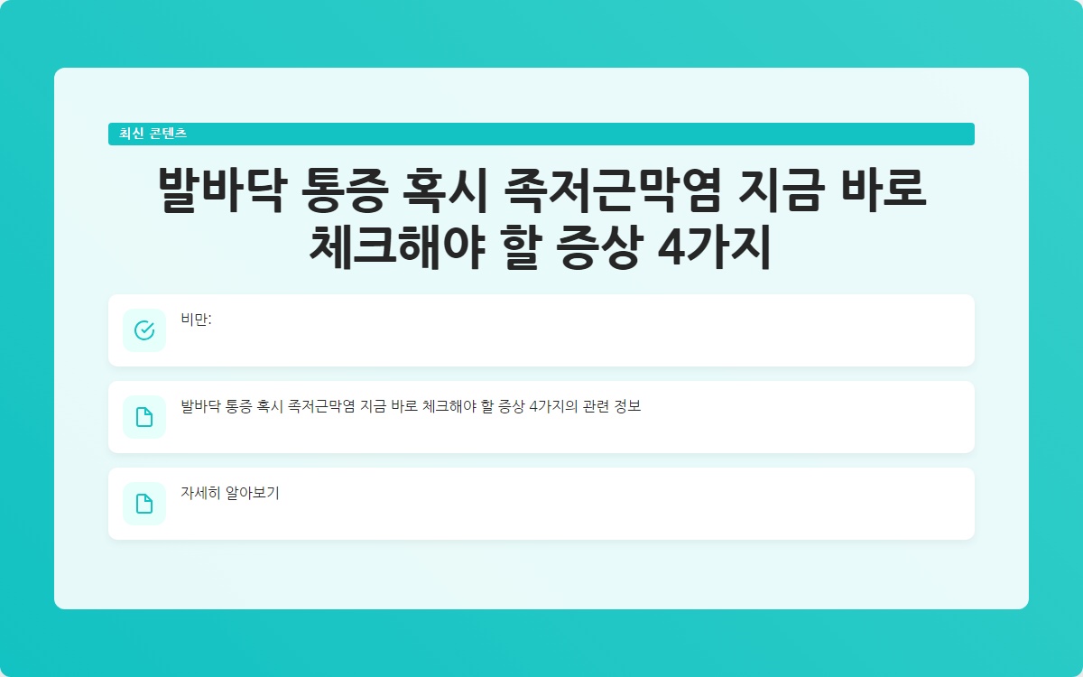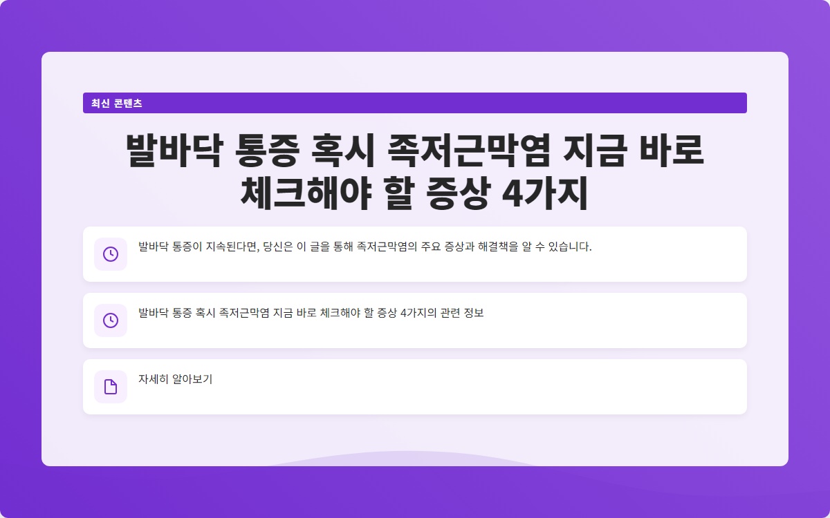 발바닥 통증이 지속된다면, 당신은 이 글을 통해 족저근막염의 주요 증상과 해결책을 알 수 있습니다.
