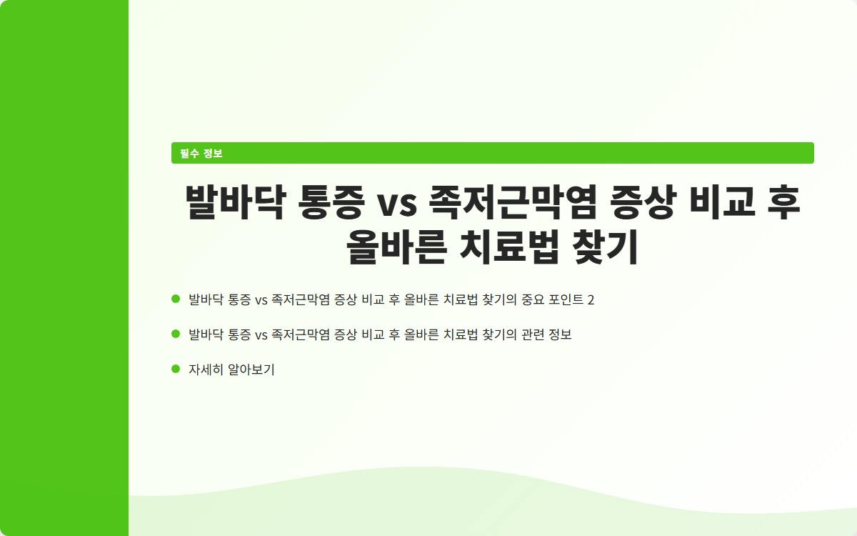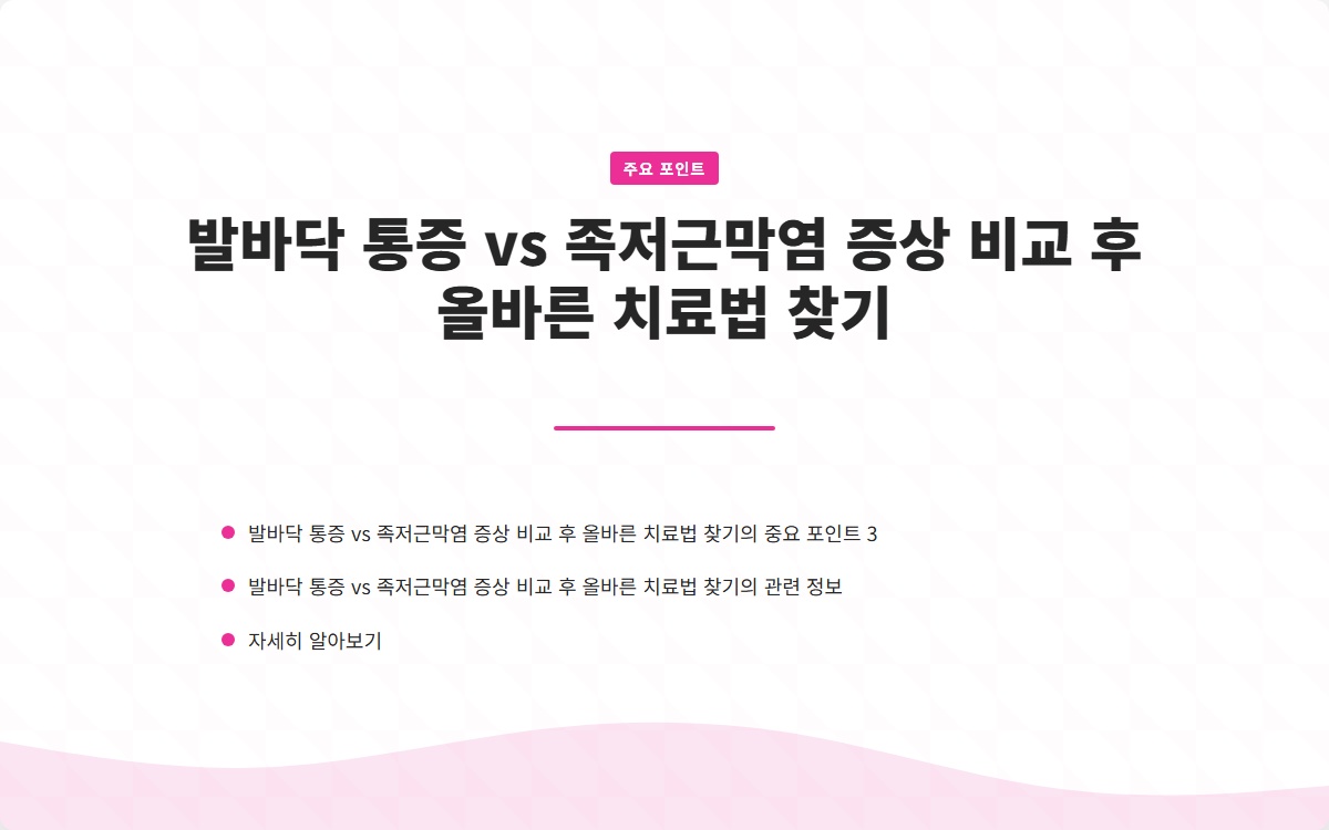많은 초보자들이 겪는 문제 중 하나가 발바닥 통증입니다. 이 글에서는 발바닥 통증과 족저근막염의 증상을 비교하고 올바른 치료법을 알아보겠습니다! 지금 확인해보세요!