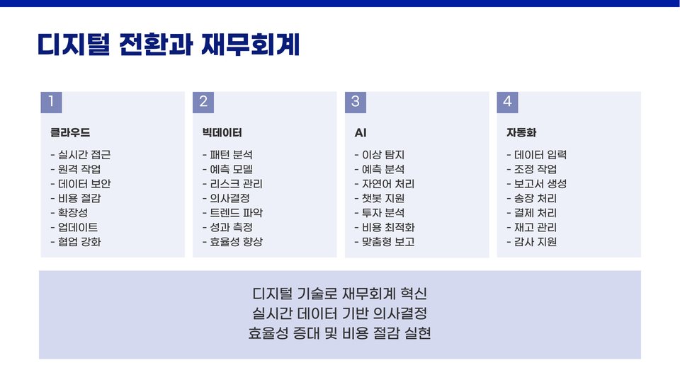 | 효율적 소프트웨어 사용 | 자동화를 통해 인적 오류를 줄이고 재무 보고의 효율성을 높임 |