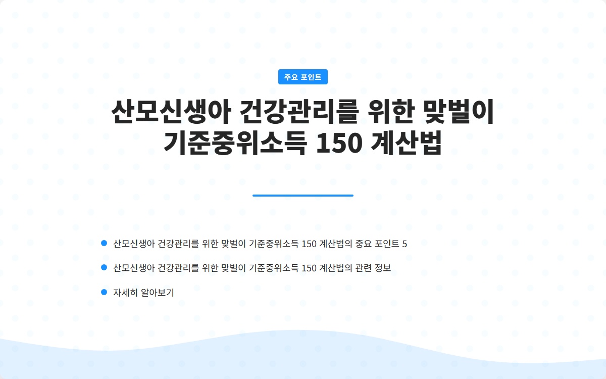산모신생아 건강관리를 위한 맞벌이 기준중위소득 150 계산법
