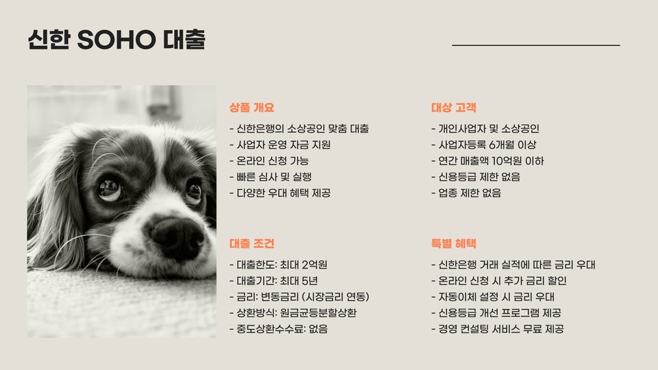 신한은행의 소상공인 대출은 개인 신용에 따라 대출 한도가 결정되며, 다양한 금융 상품으로 구성되어 있습니다. 특히, 상환 유예 기간을 설정할 수 있어 초기 자금 부담을 줄일 수 있는 옵션이 제공됩니다.