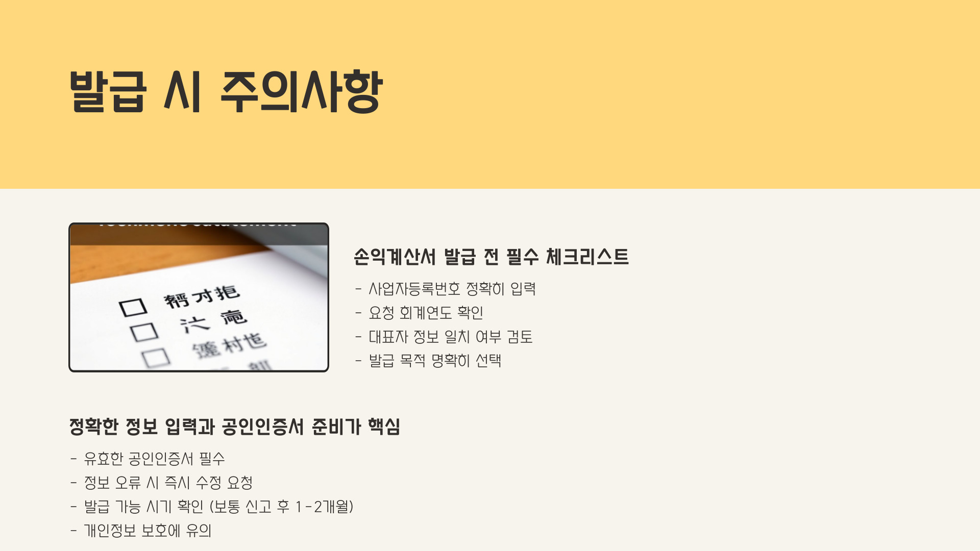 손익계산서 발급 시 유의사항