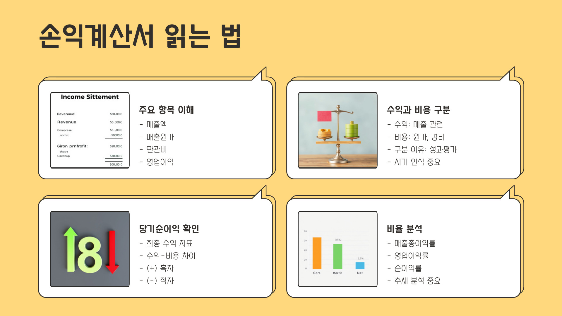 • 손익계산서의 기본 구조를 이해하는 것이 중요합니다.