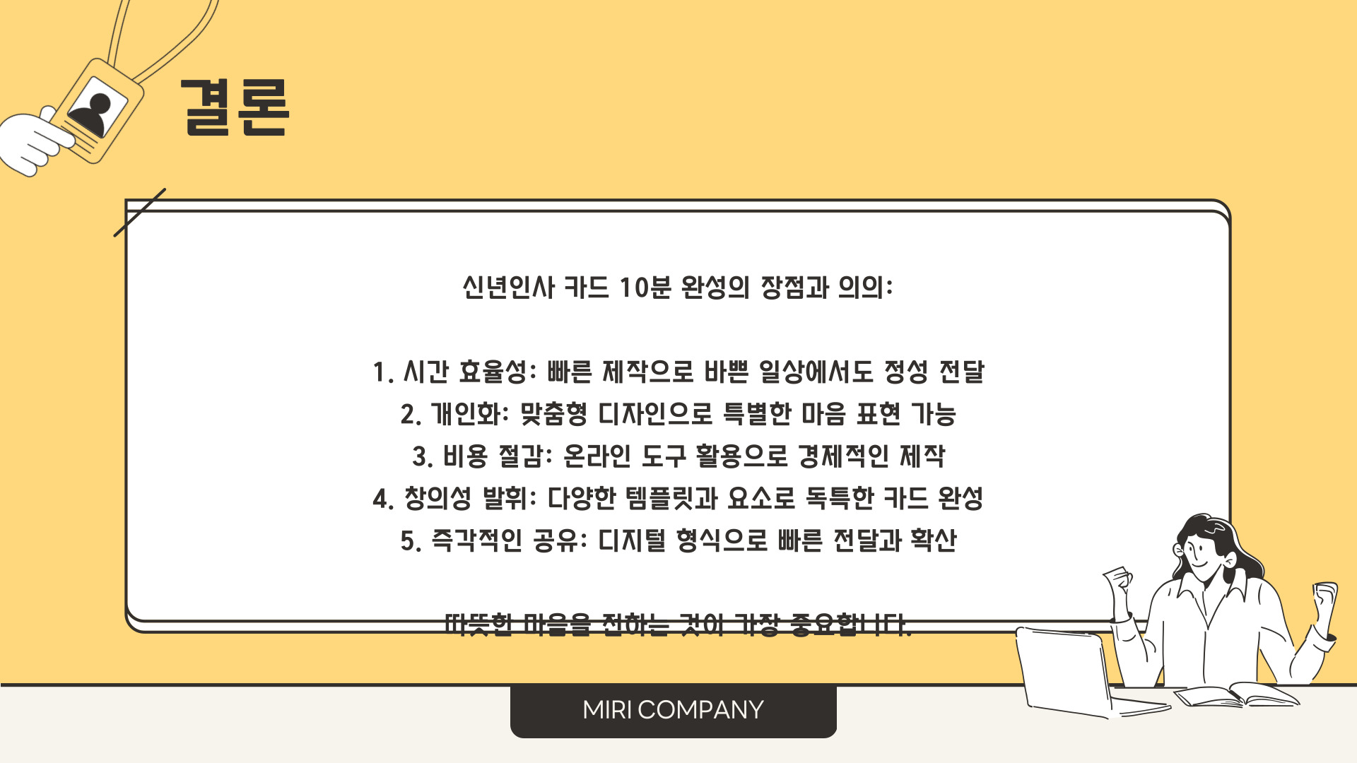 신년인사 카드는 사랑과 감사의 메시지를 전하는 중요한 방법입니다. 10분 만에 만들 수 있는 신년인사 카드는 정성이 담긴 선물이 될 것입니다. 바쁜 일상 속에서도 소중한 사람들에게 따뜻한 마음을 전할 수 있는 기회를 놓치지 마세요.