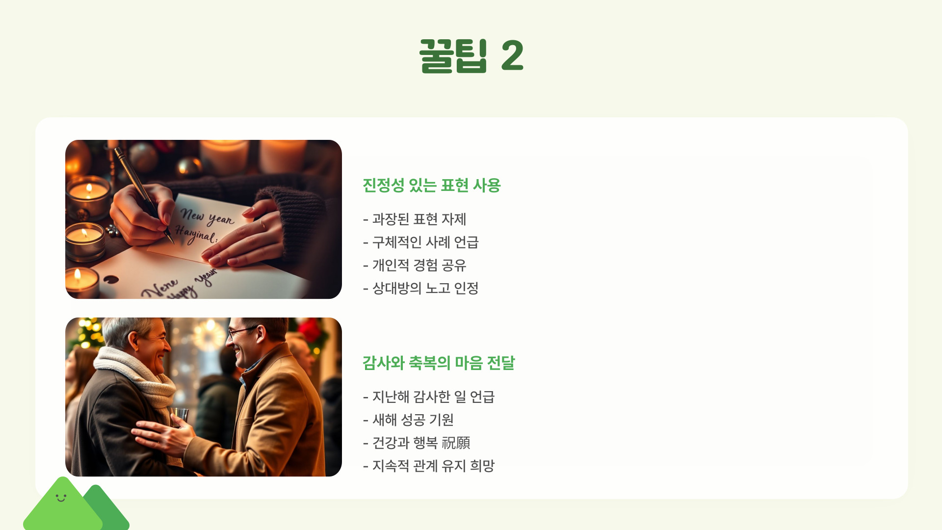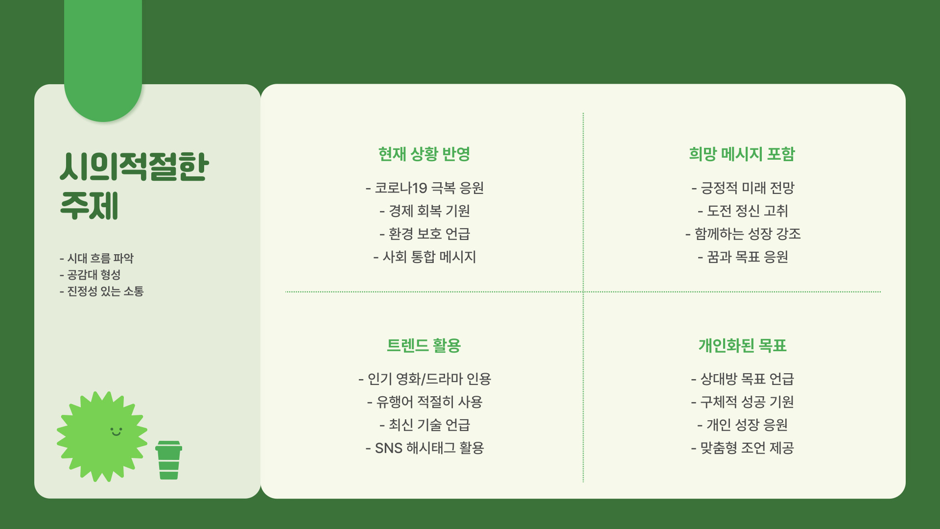 - 따뜻한 마음을 전하라: 진정성을 담은 메시지로 감동을 준다.