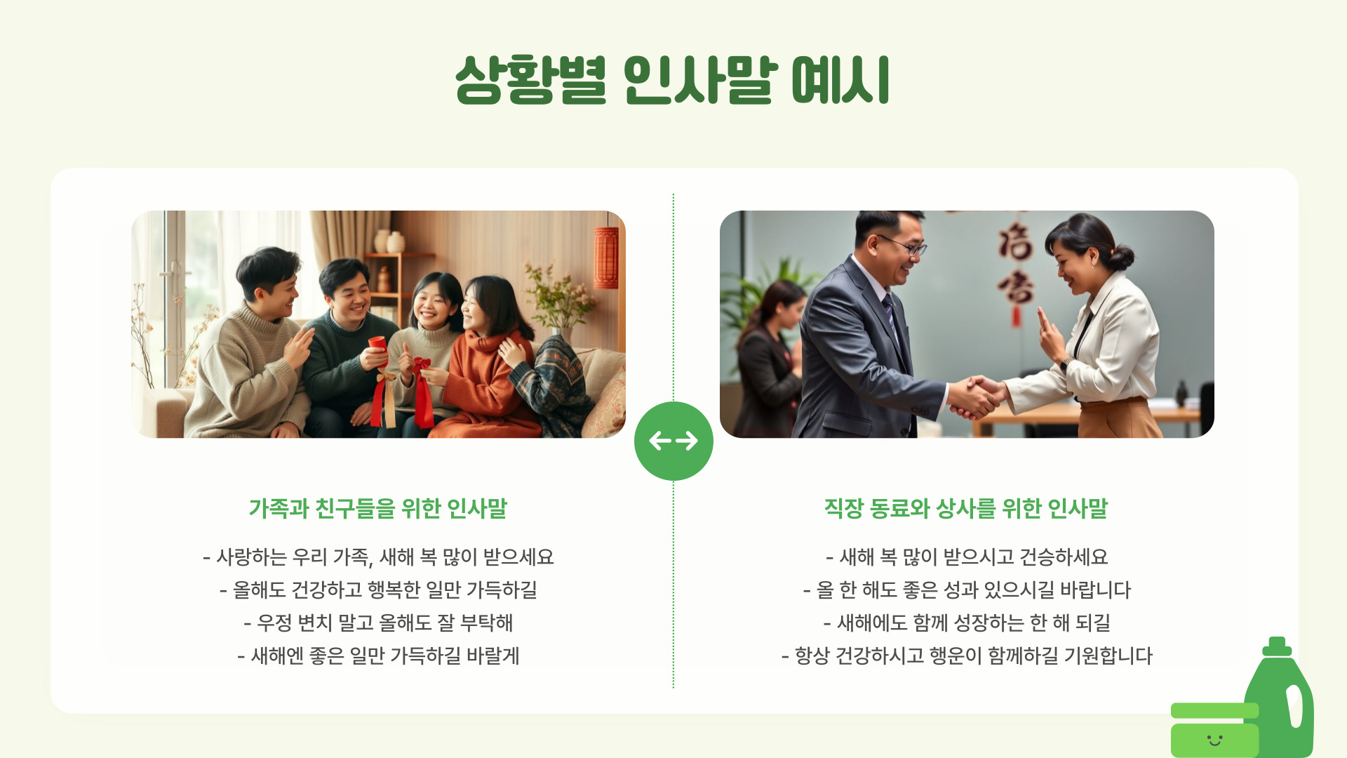 - 관계에 따라 조절하라: 인사말은 상대방의 상황과 관계를 고려해 선택하라.