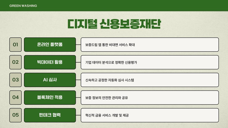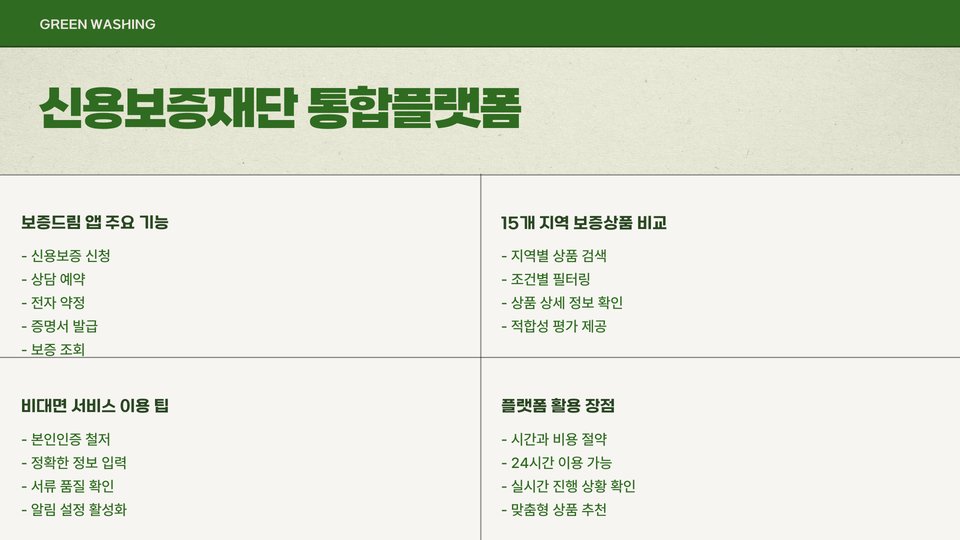 - 보증, 금융 교육, 자금 지원 등 다양한 기능 제공