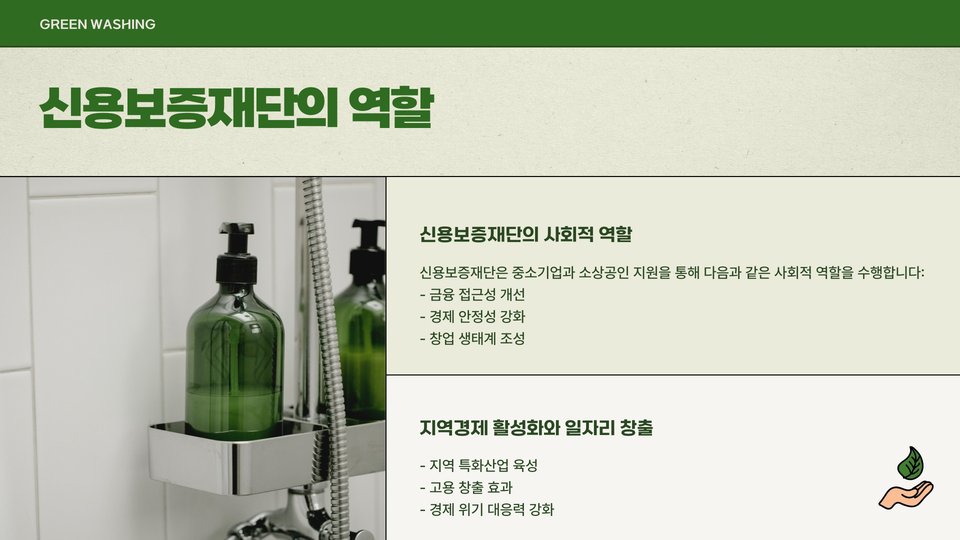 - 신용보증재단은 중소기업의 금융 접근성을 높임.