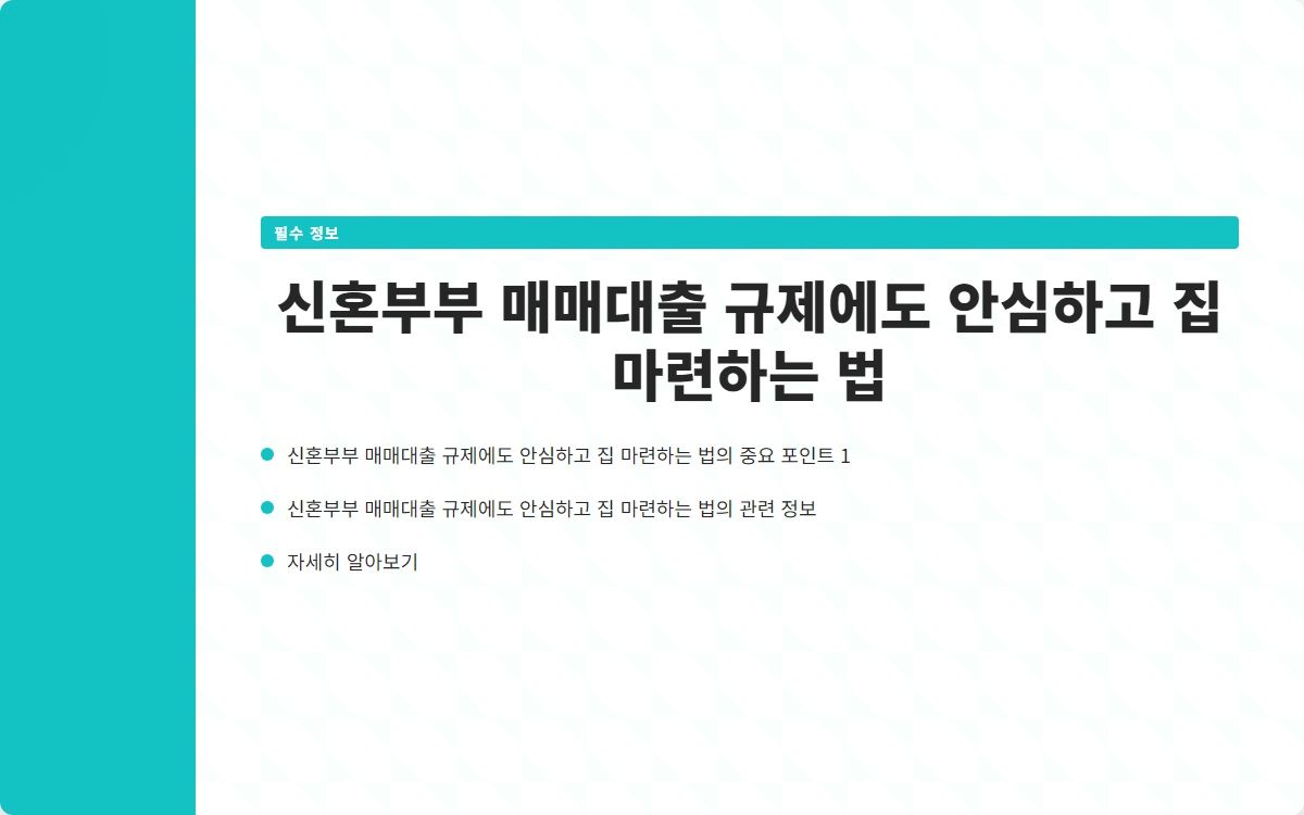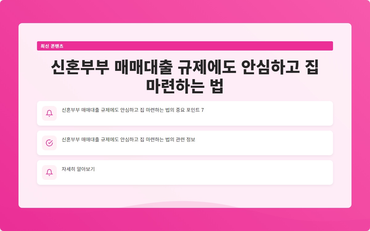 신혼부부 매매대출 규제에도 안심하고 집 마련하는 법