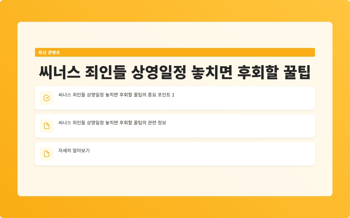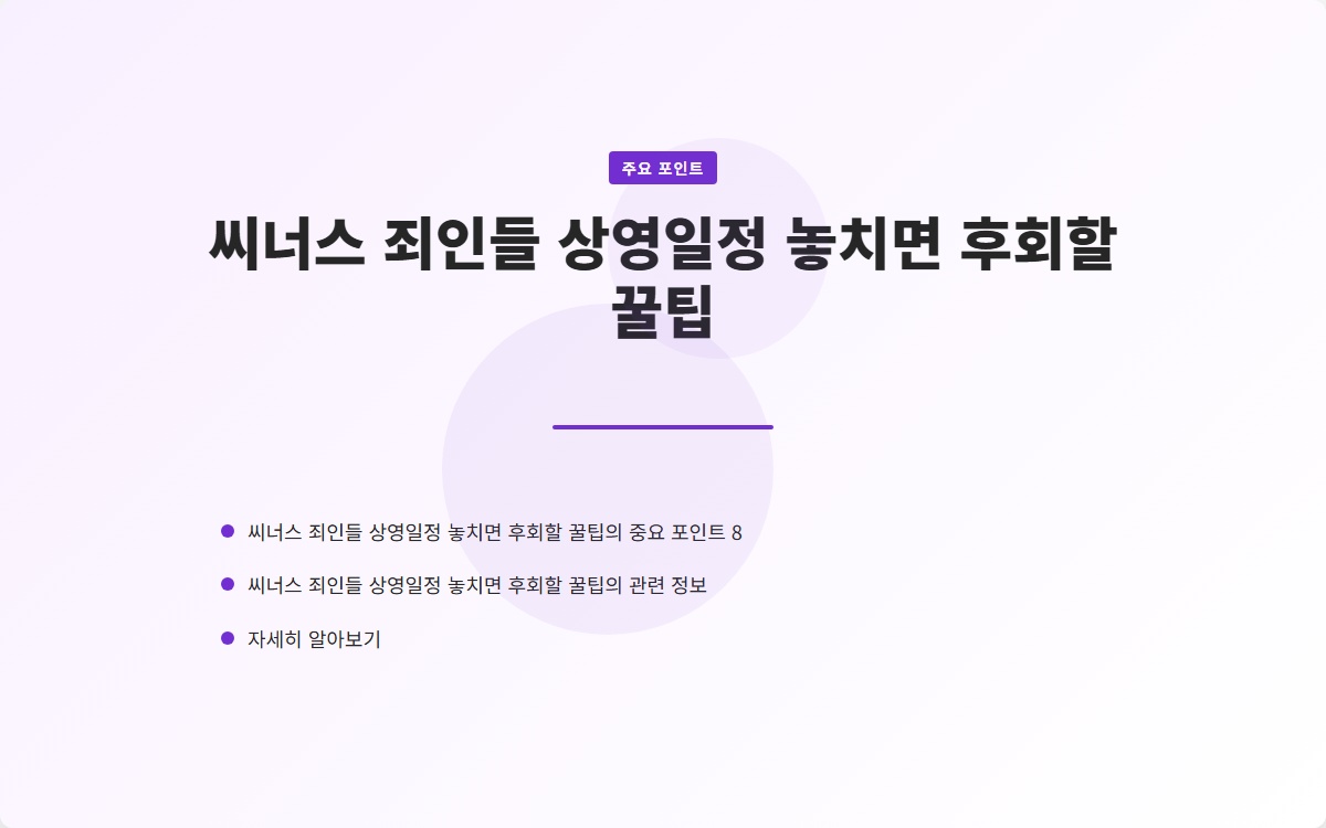영화 '씨너스: 죄인들'의 상영일정은 매우 중요합니다. 꼭 시간을 확보하고, 소중한 관람 경험을 놓치지 않기 위해 준비하세요!