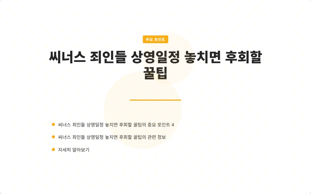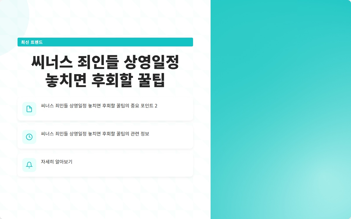 영화 '씨너스: 죄인들'의 상영일정은 매우 중요합니다. 꼭 시간을 확보하고, 소중한 관람 경험을 놓치지 않기 위해 준비하세요!