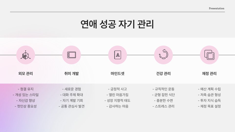 좋은 연애는 20대 인생에서 중요한 경험이므로, 적극적으로 고민하고 노력해야합니다.