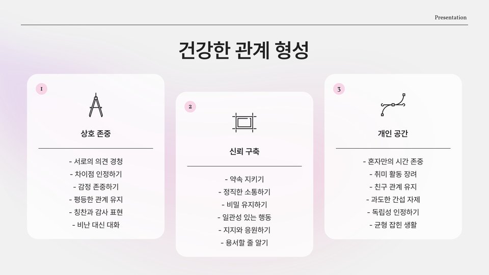 - 건강한 관계를 위해 서로의 경계를 존중해야 한다.