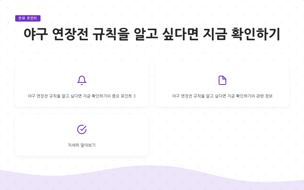 3. **온라인 자료 활용하기**: 야구 관련 블로그나 유튜브 채널에서 연장전 규칙에 대한 콘텐츠를 찾아보며 추가적인 정보를 얻는 것도 좋은 방법입니다.