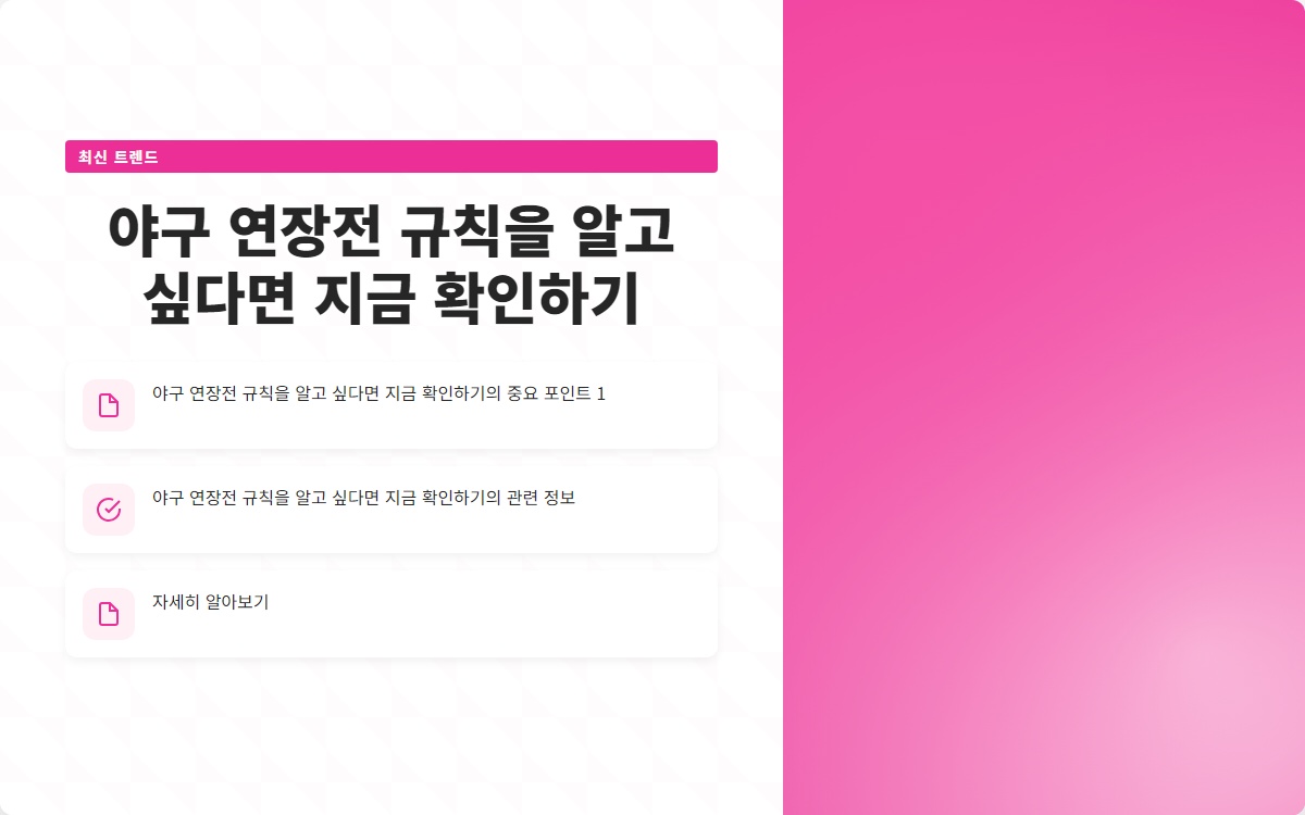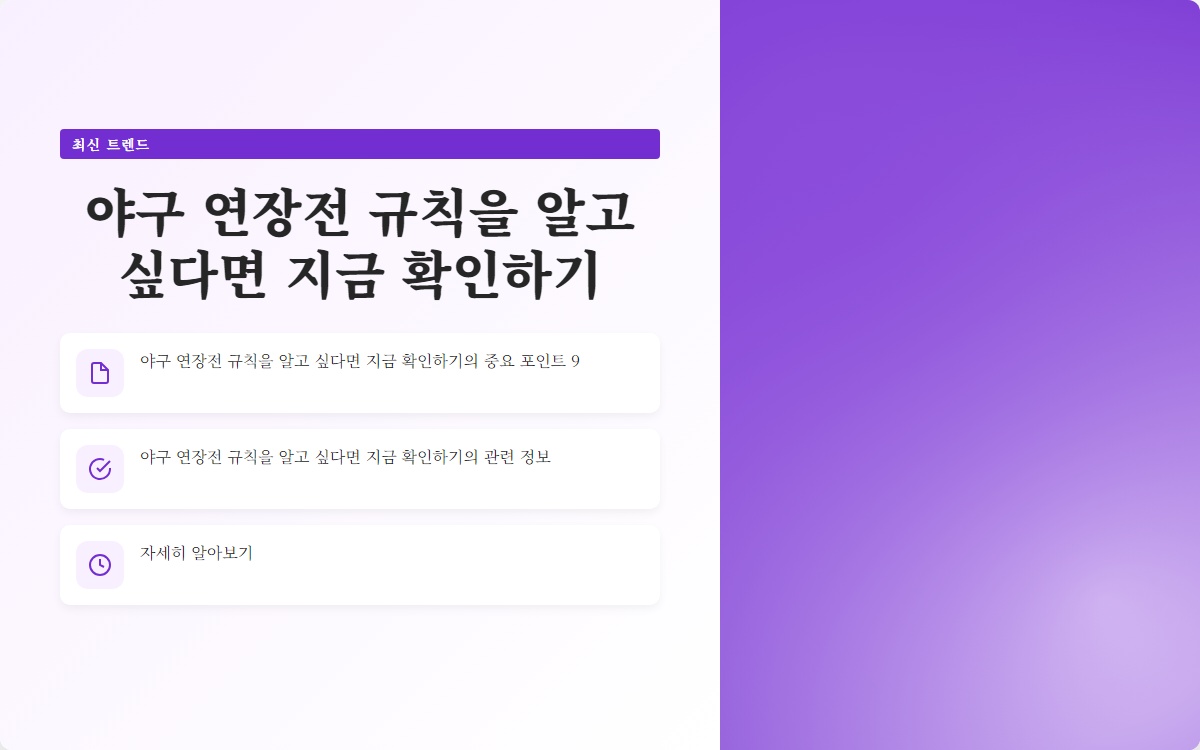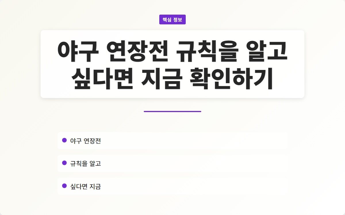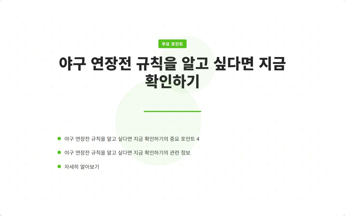 야구 연장전 규칙을 이해하는 것은 경기를 즐기는 데 큰 도움이 됩니다. 다음은 간단한 요약입니다: