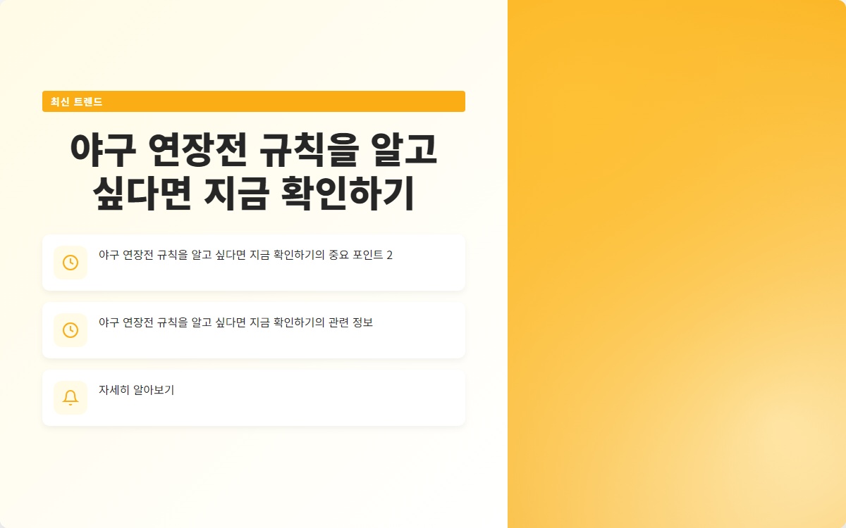 야구 연장전 규칙을 이해하는 것은 경기를 즐기는 데 큰 도움이 됩니다. 다음은 간단한 요약입니다: