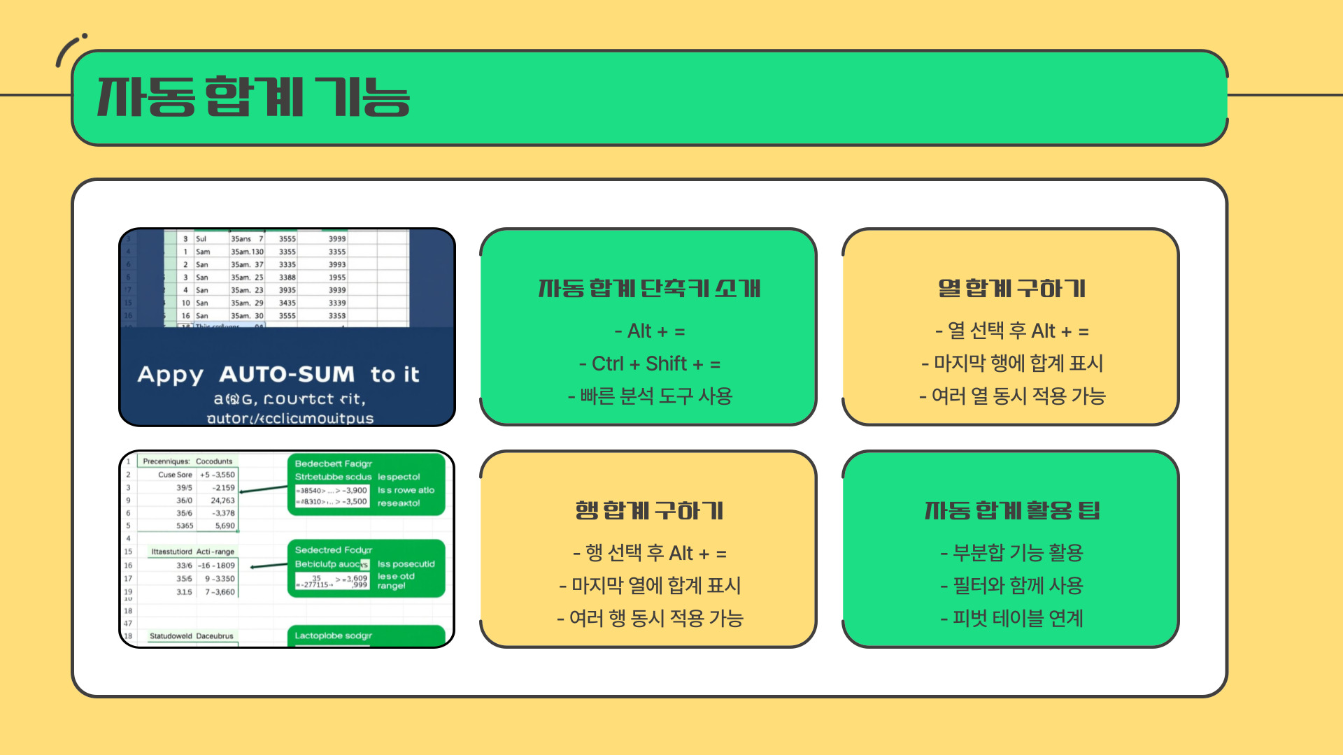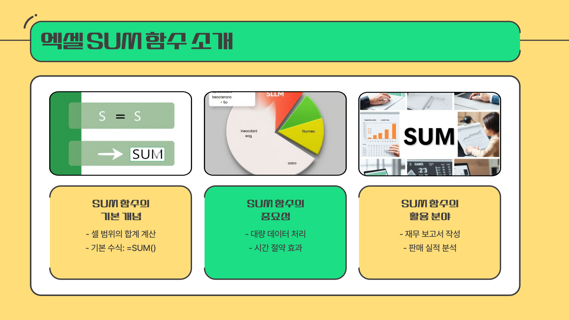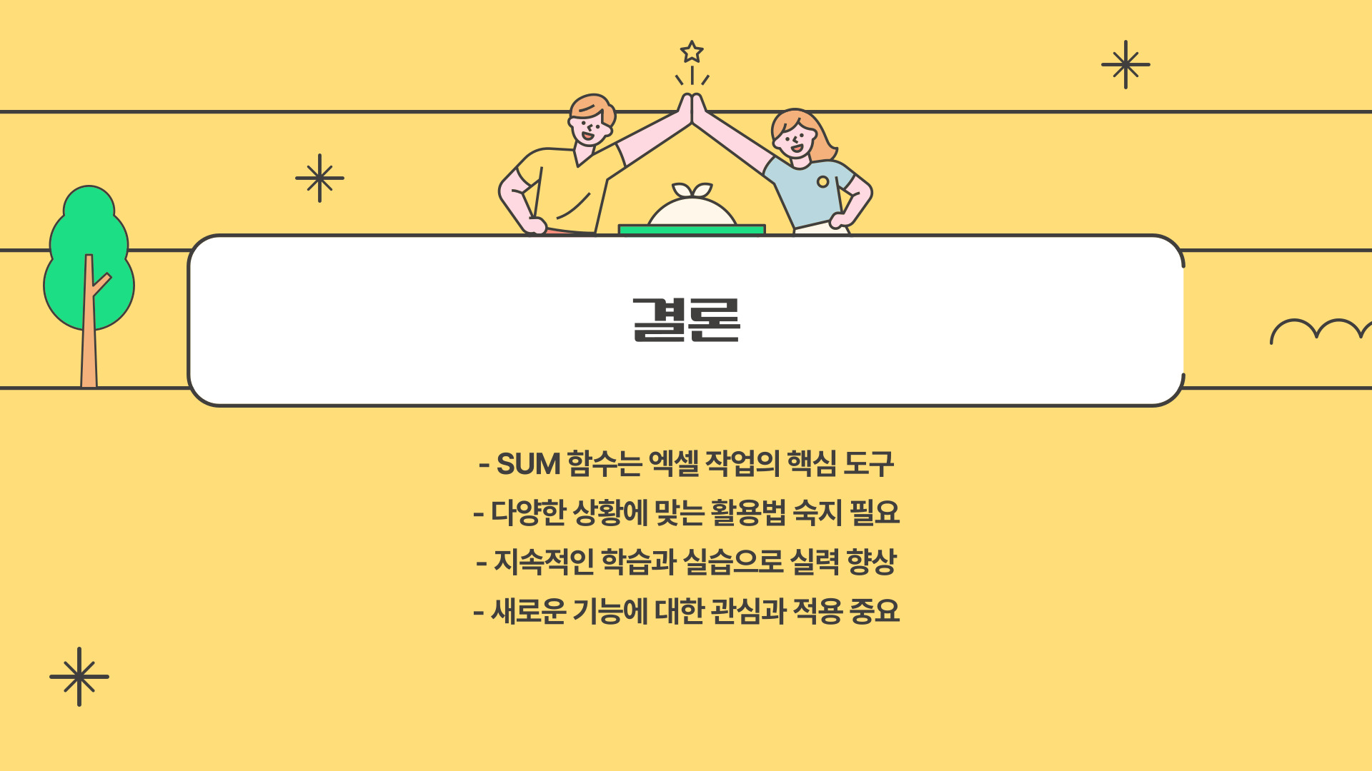 • SUM 함수를 활용하면 대량의 데이터를 쉽게 처리할 수 있습니다.