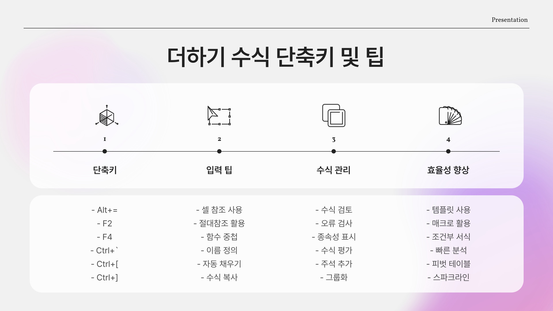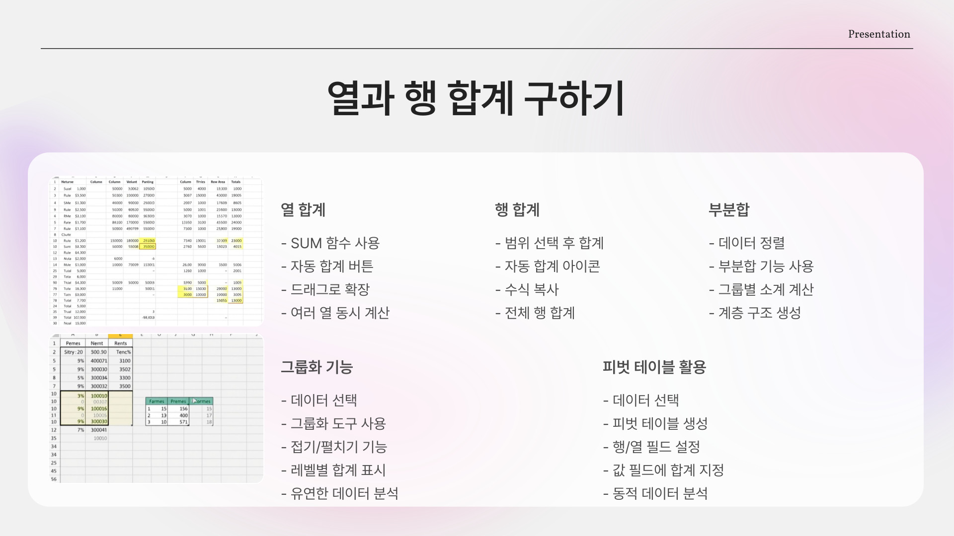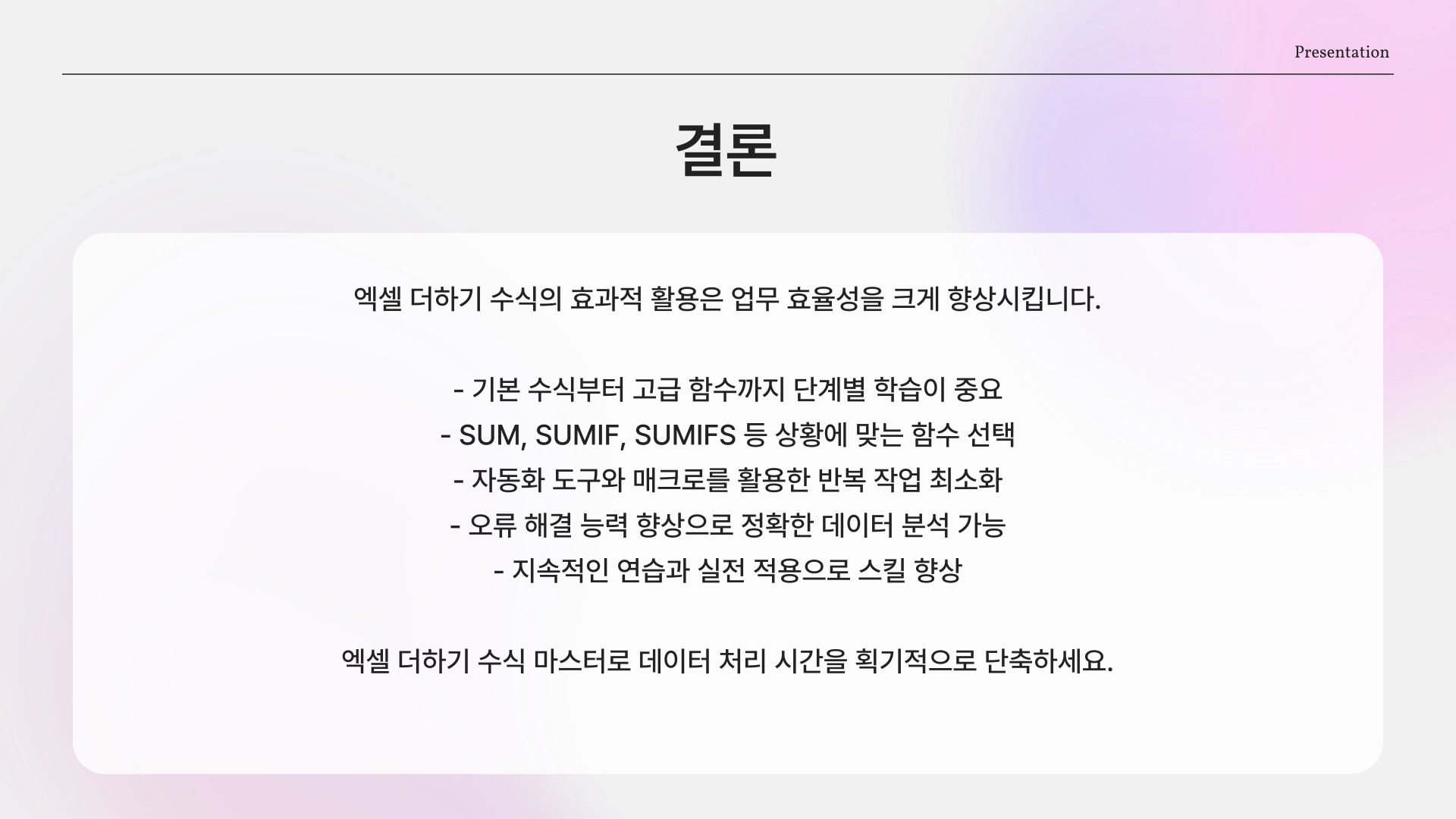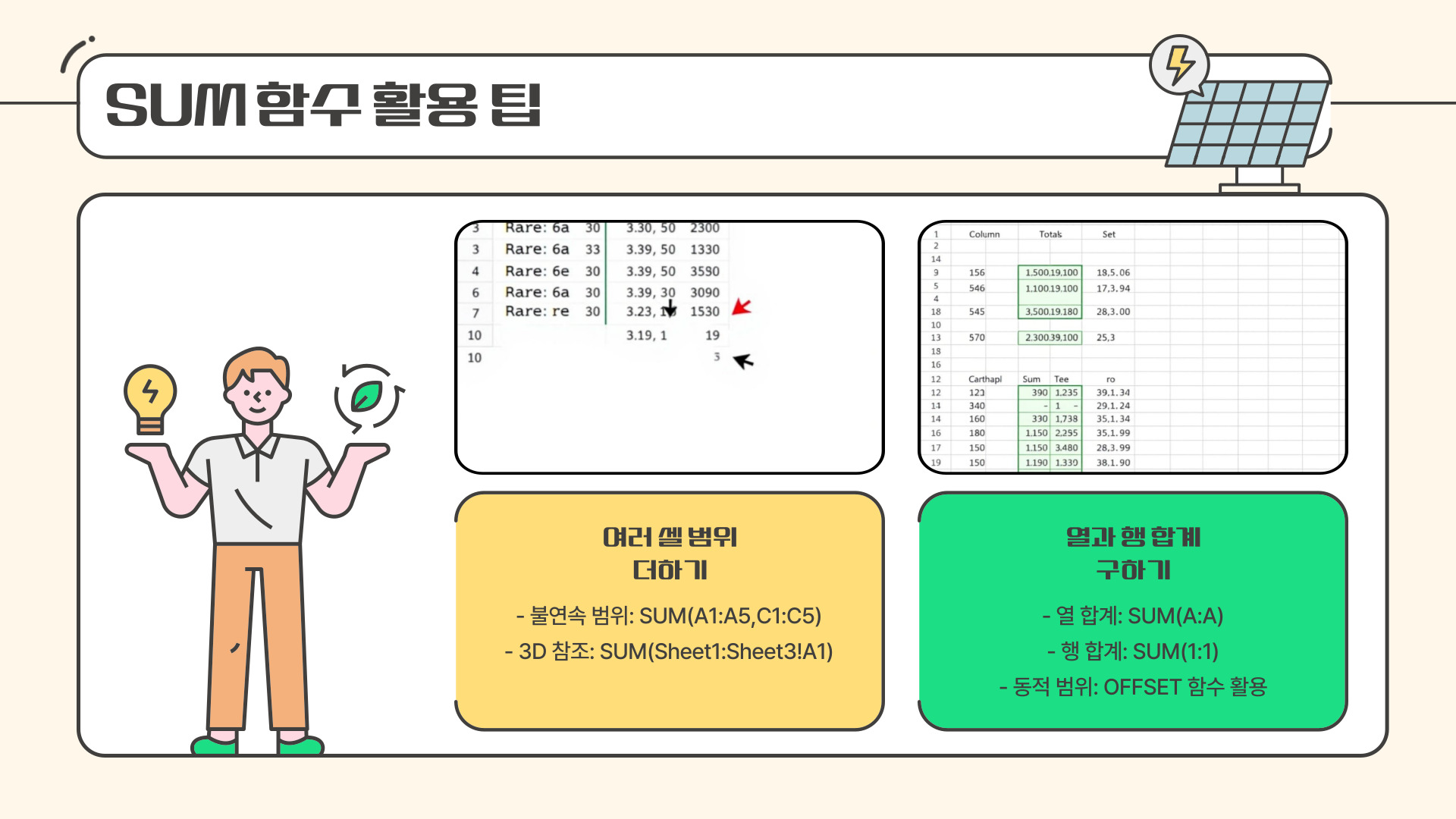 • SUM 함수를 활용하면 대량의 데이터를 쉽게 처리할 수 있습니다.