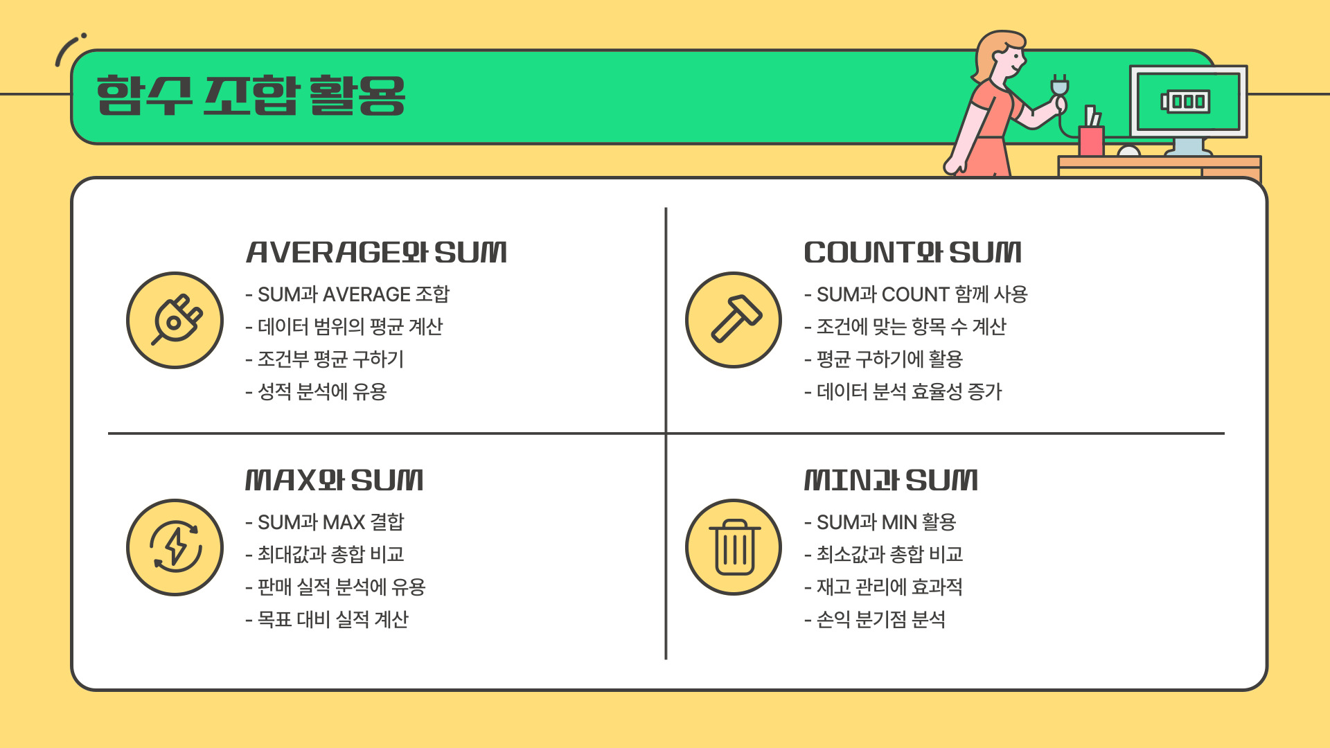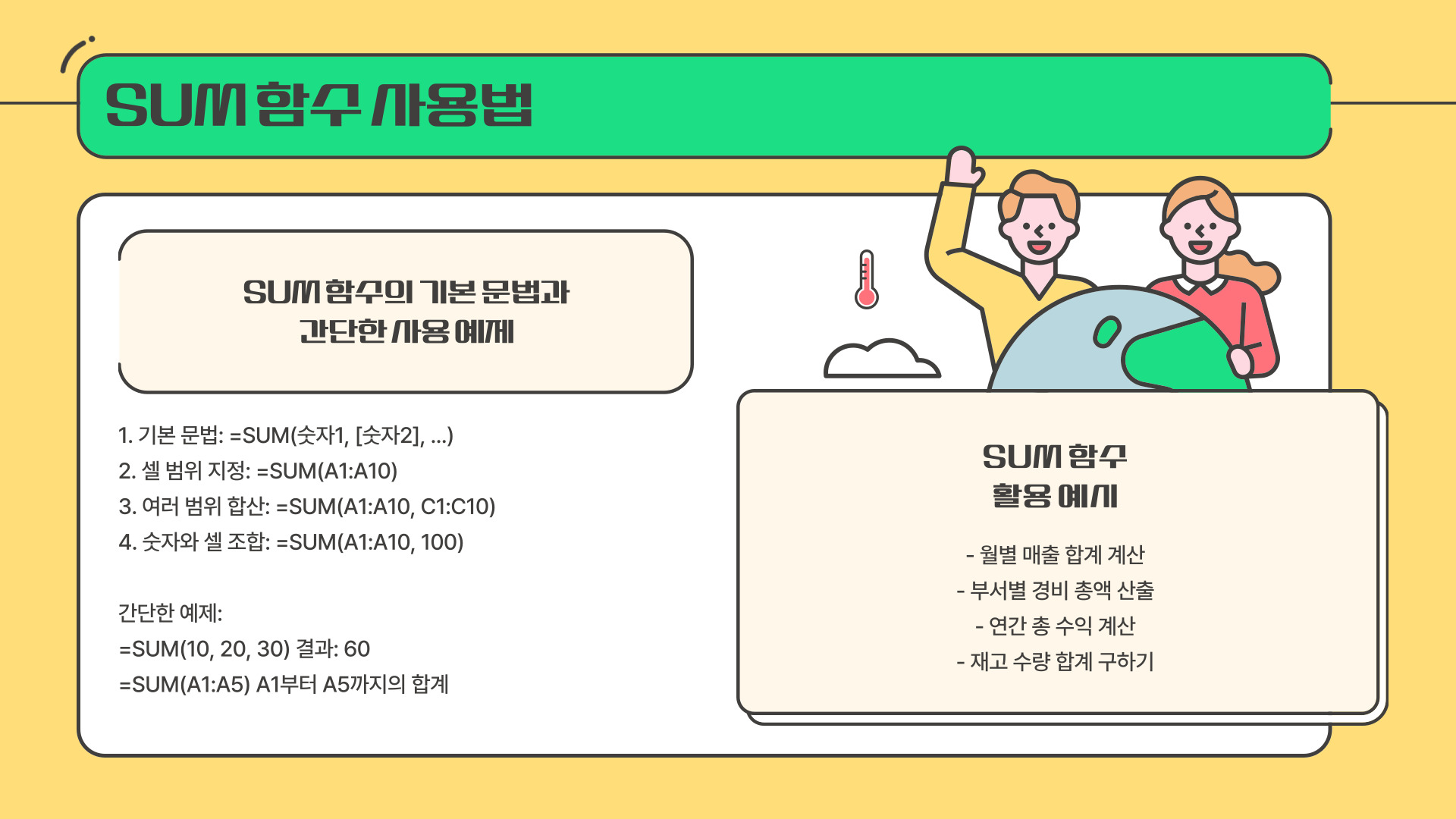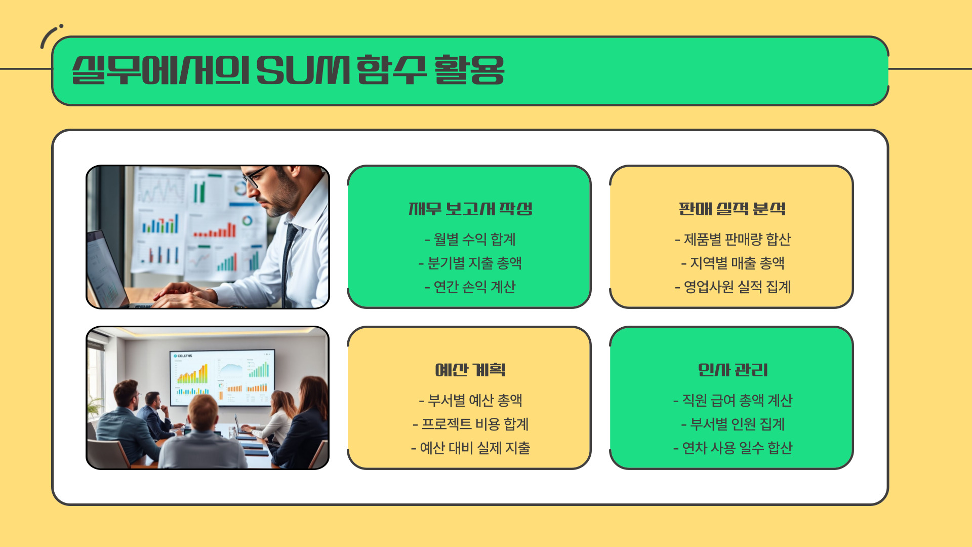 - SUM 함수를 활용하면 대량의 데이터를 쉽게 처리할 수 있습니다.