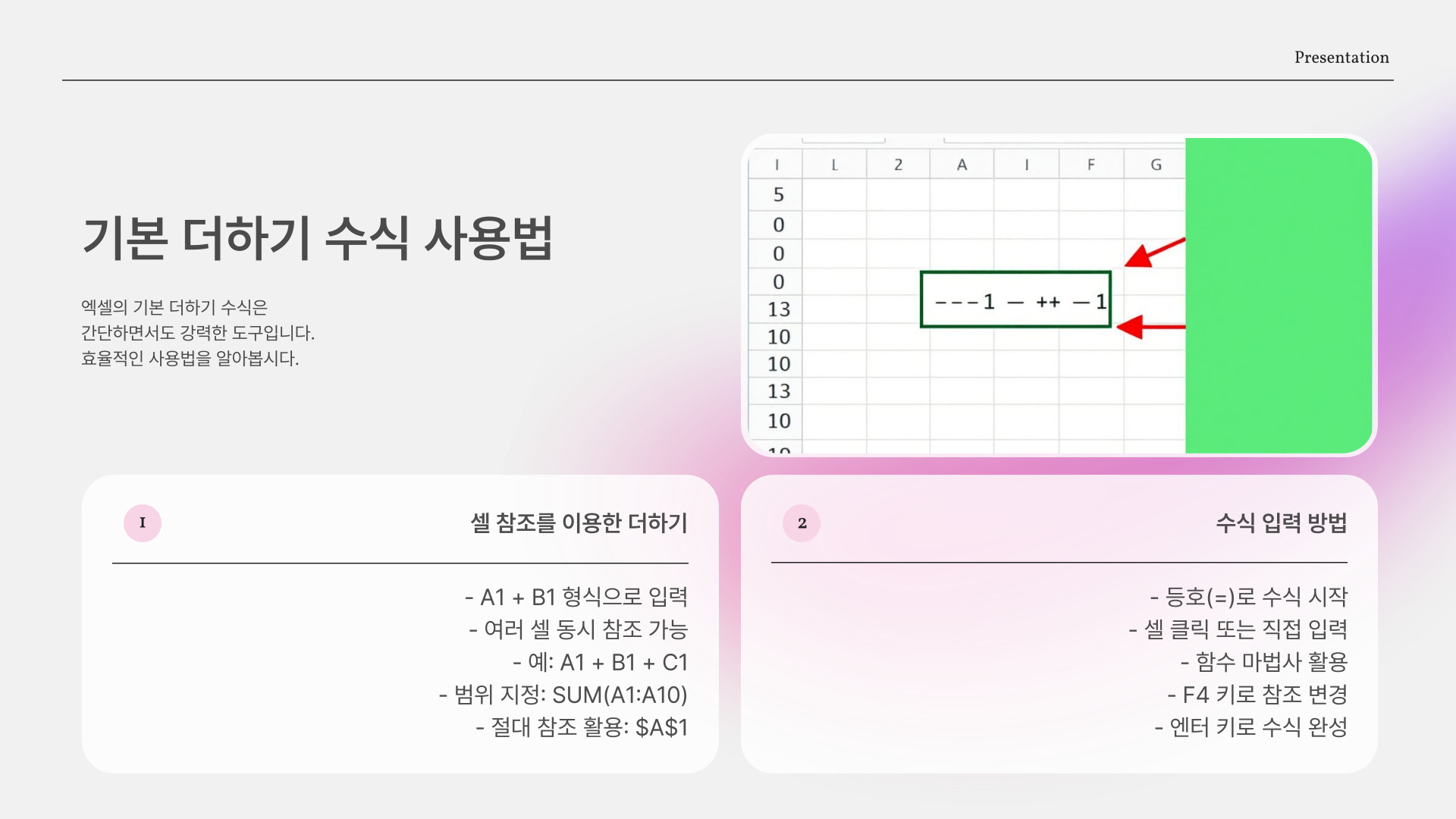 엑셀 더하기 수식의 이해